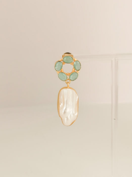 Classic Mimi Freshwater Pearl Earrings - Gold Plated - Natural Stones - Pink, Aqua and Pearls