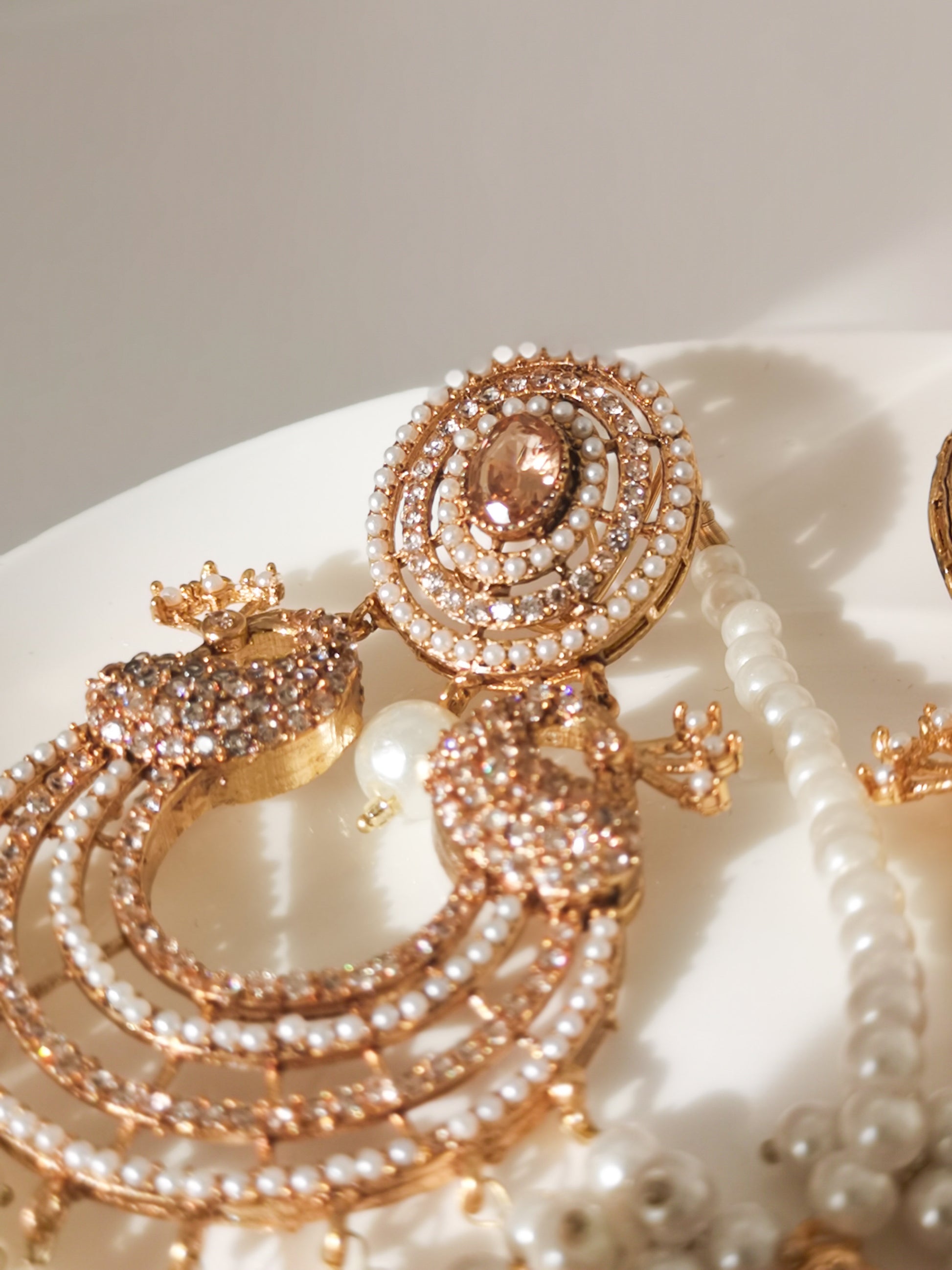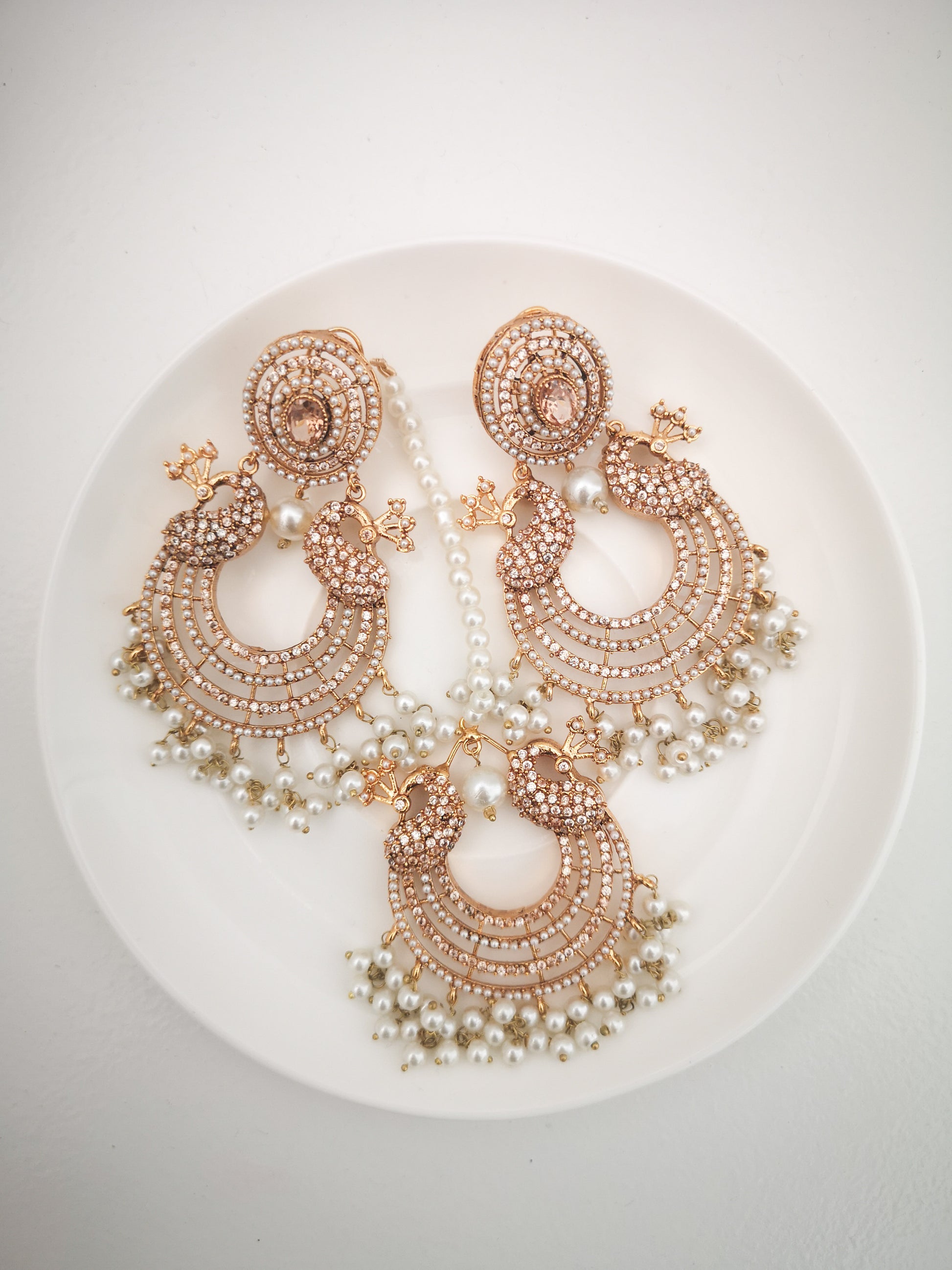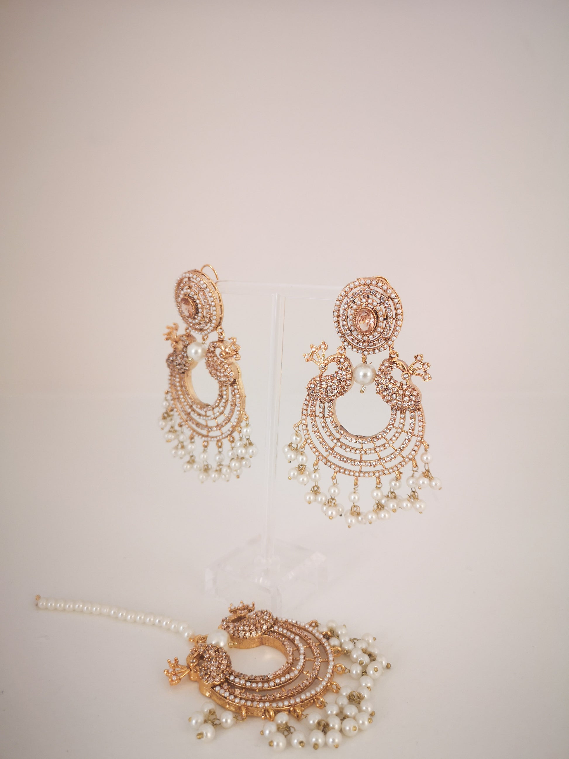 Chaand Baali and Teeka Set - Bronze / Champagne