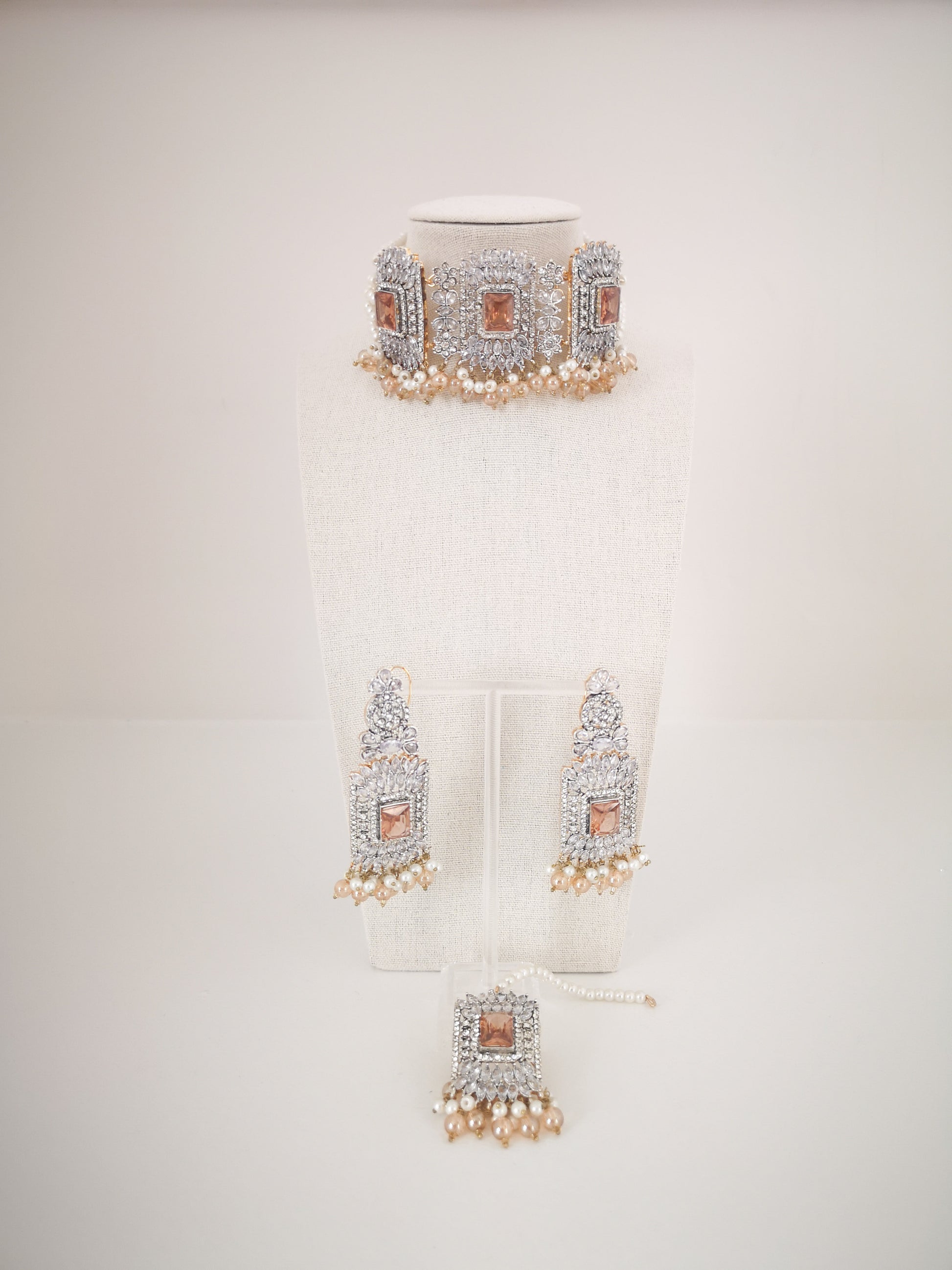 Choker Set in Pearls and Rhinestones - Champagne/Bronze