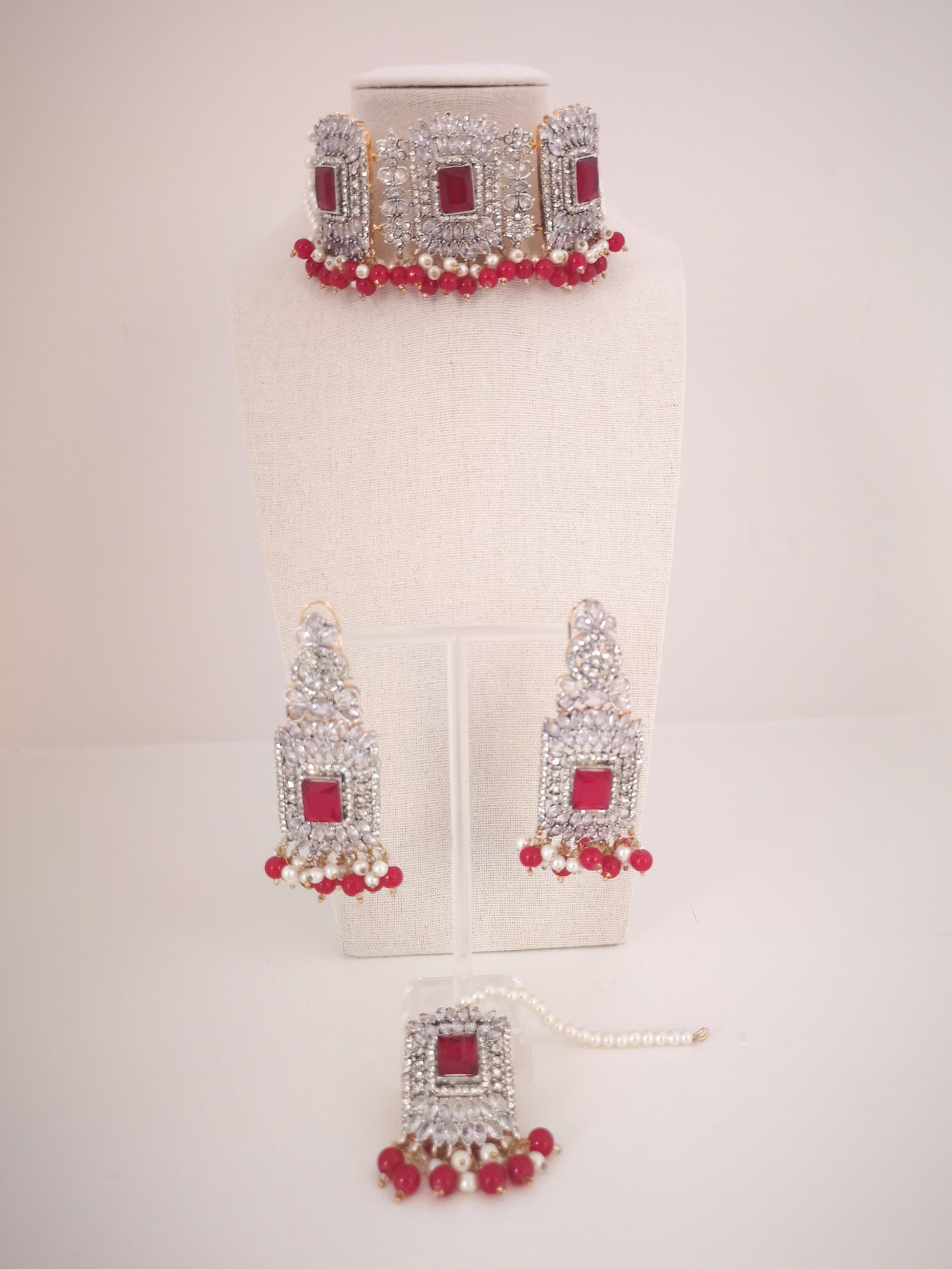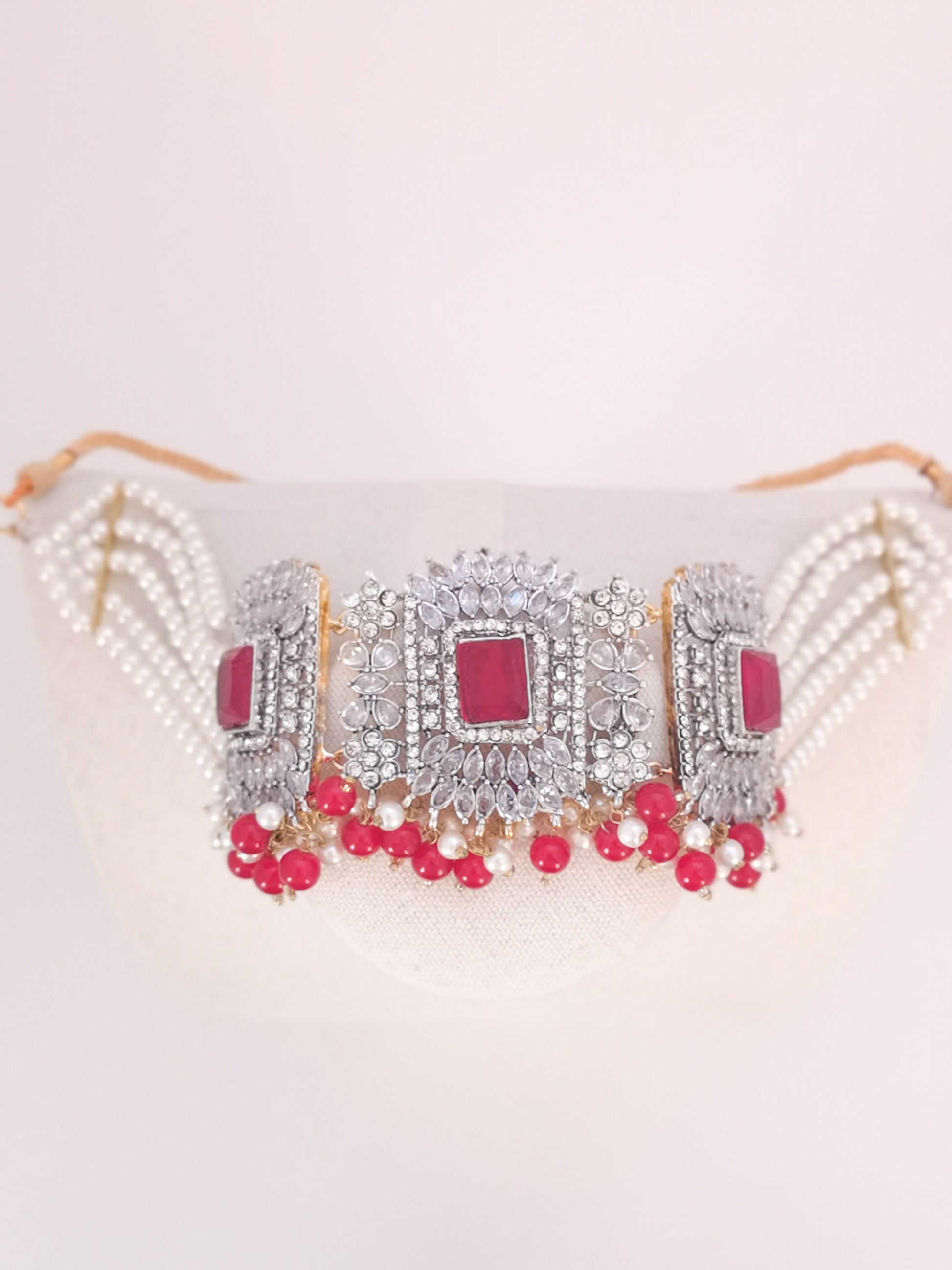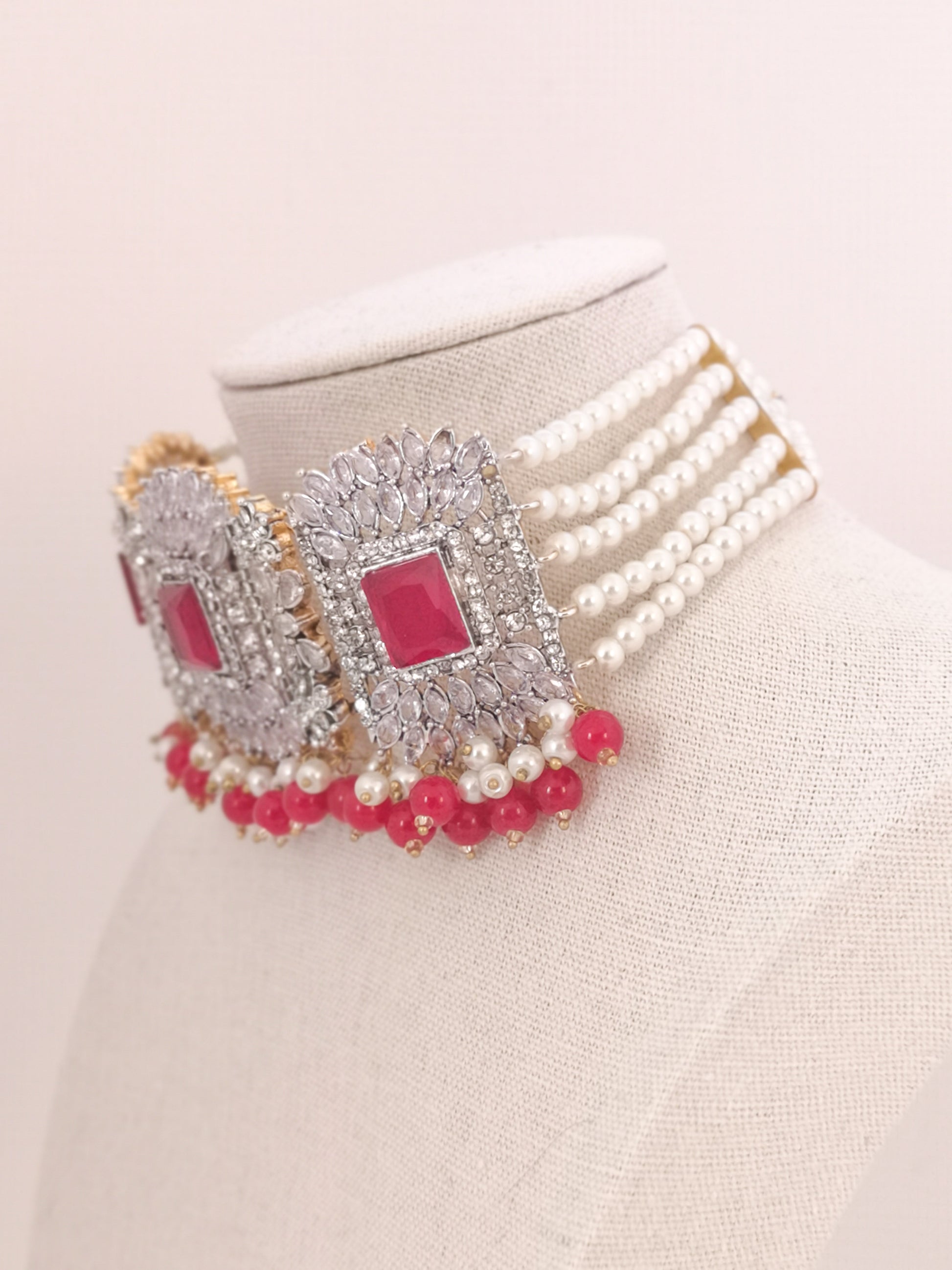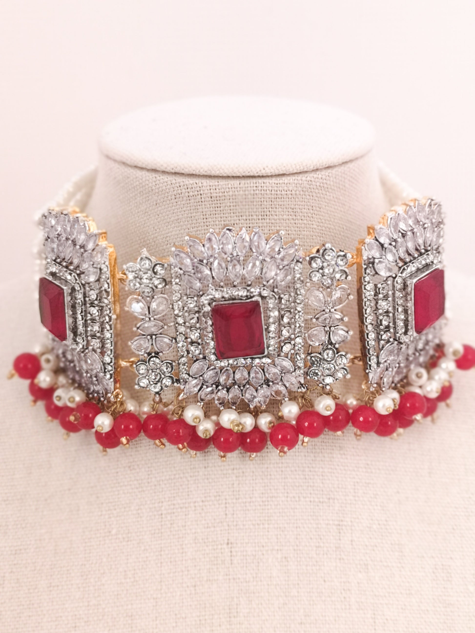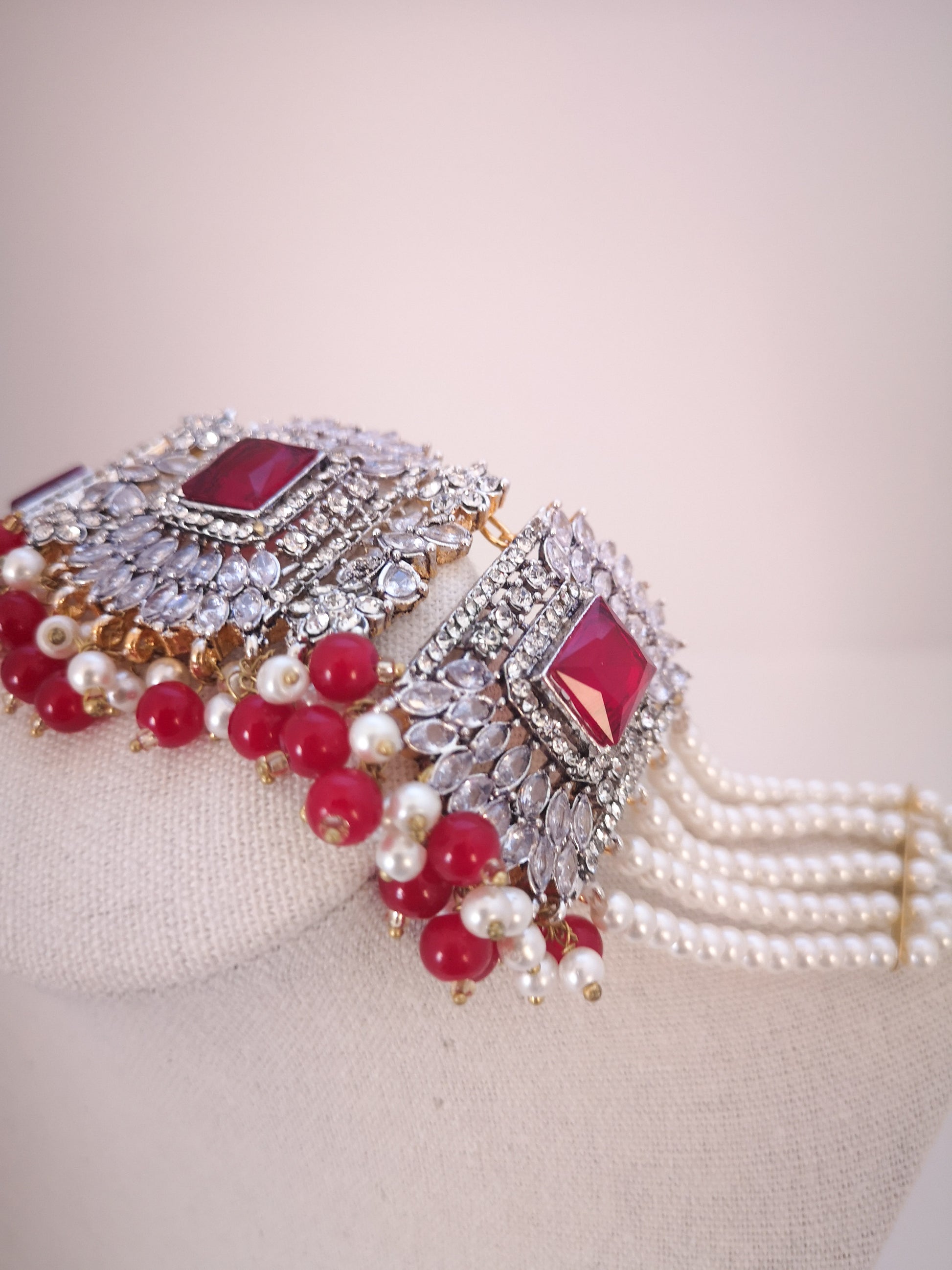 Choker Set in Pearls and Rhinestones - Red