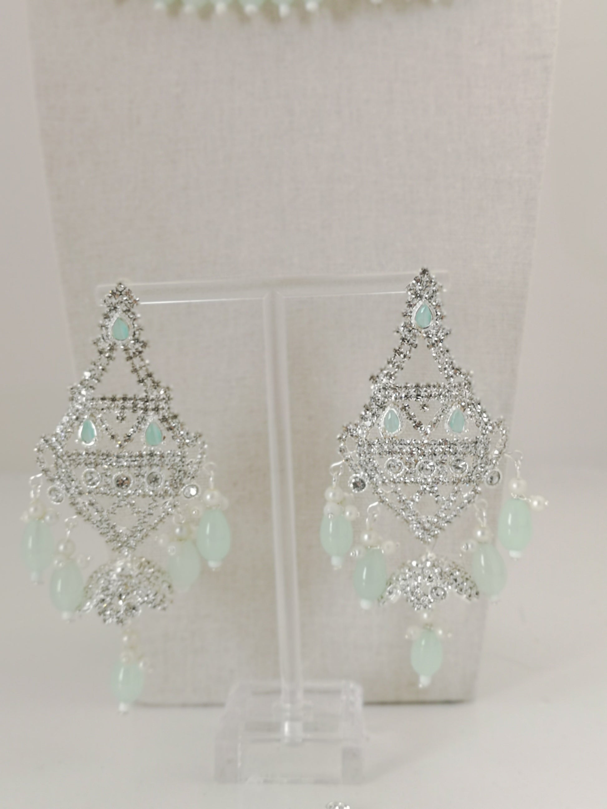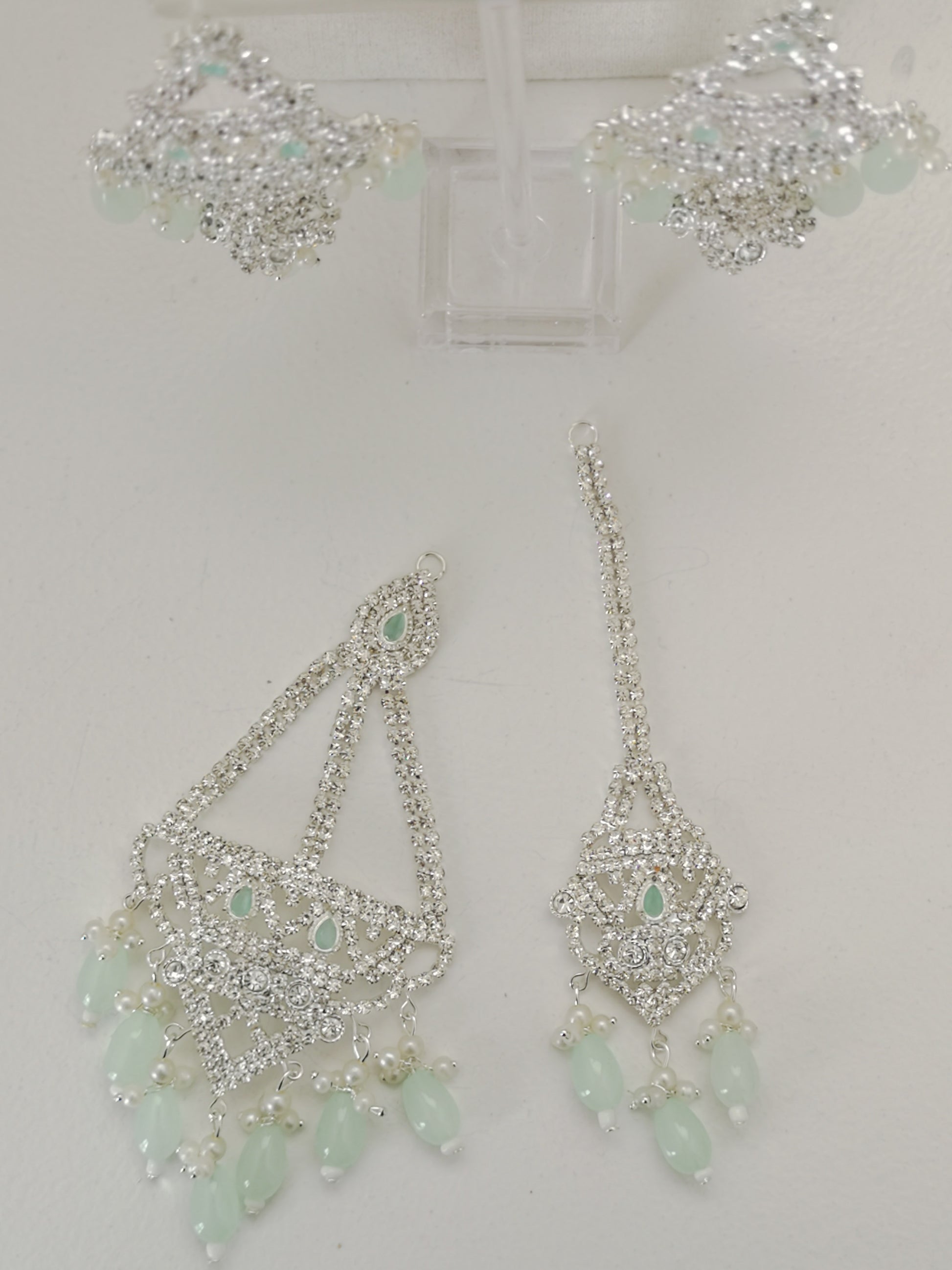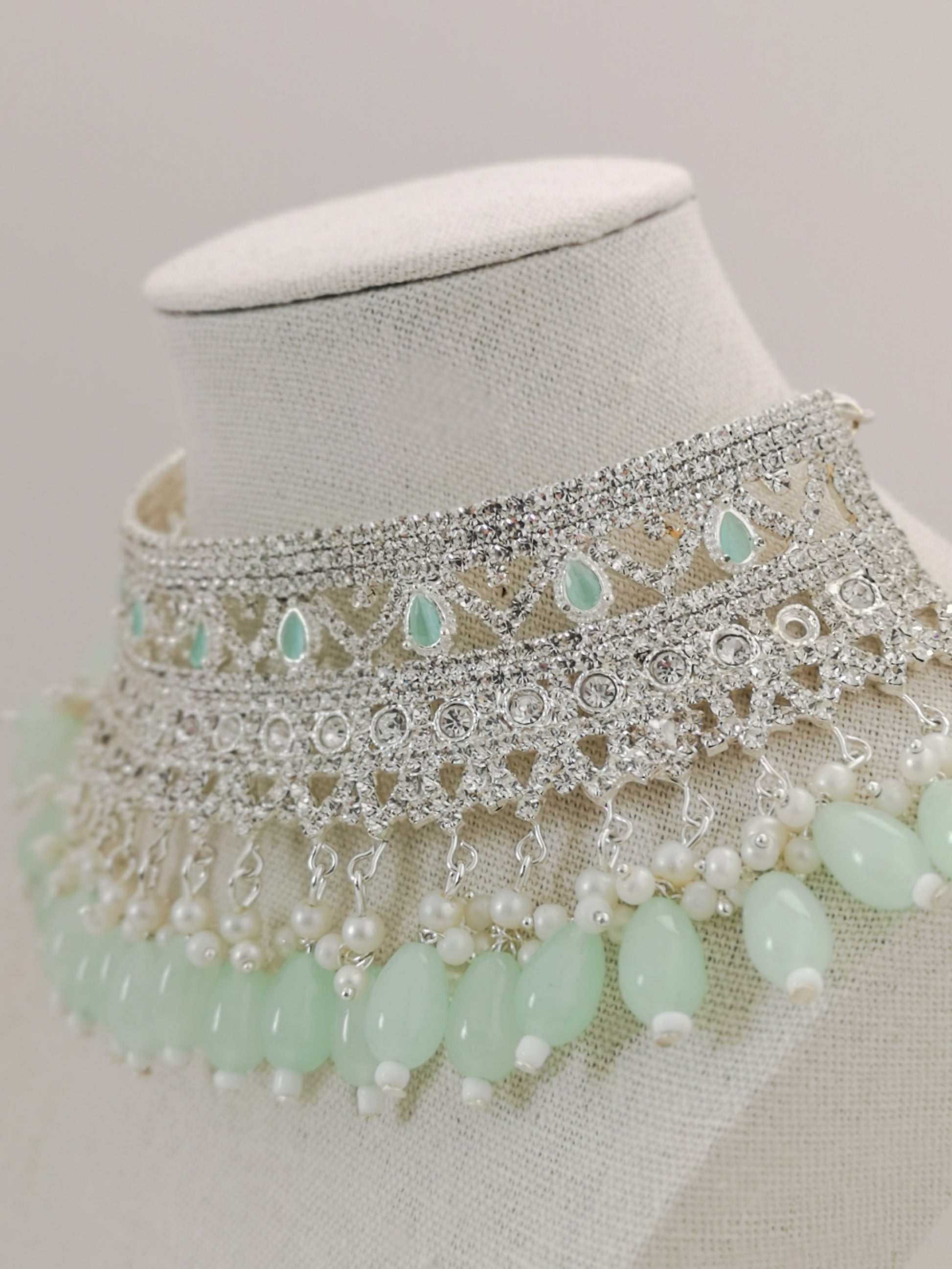 Choker Set - Mint and Silver (Necklace, Earrings, Teeka and Jhoomer)