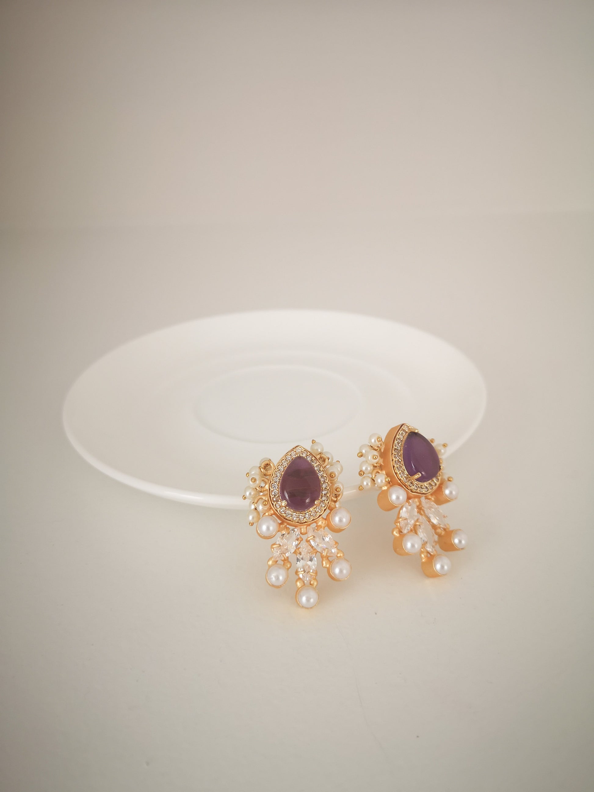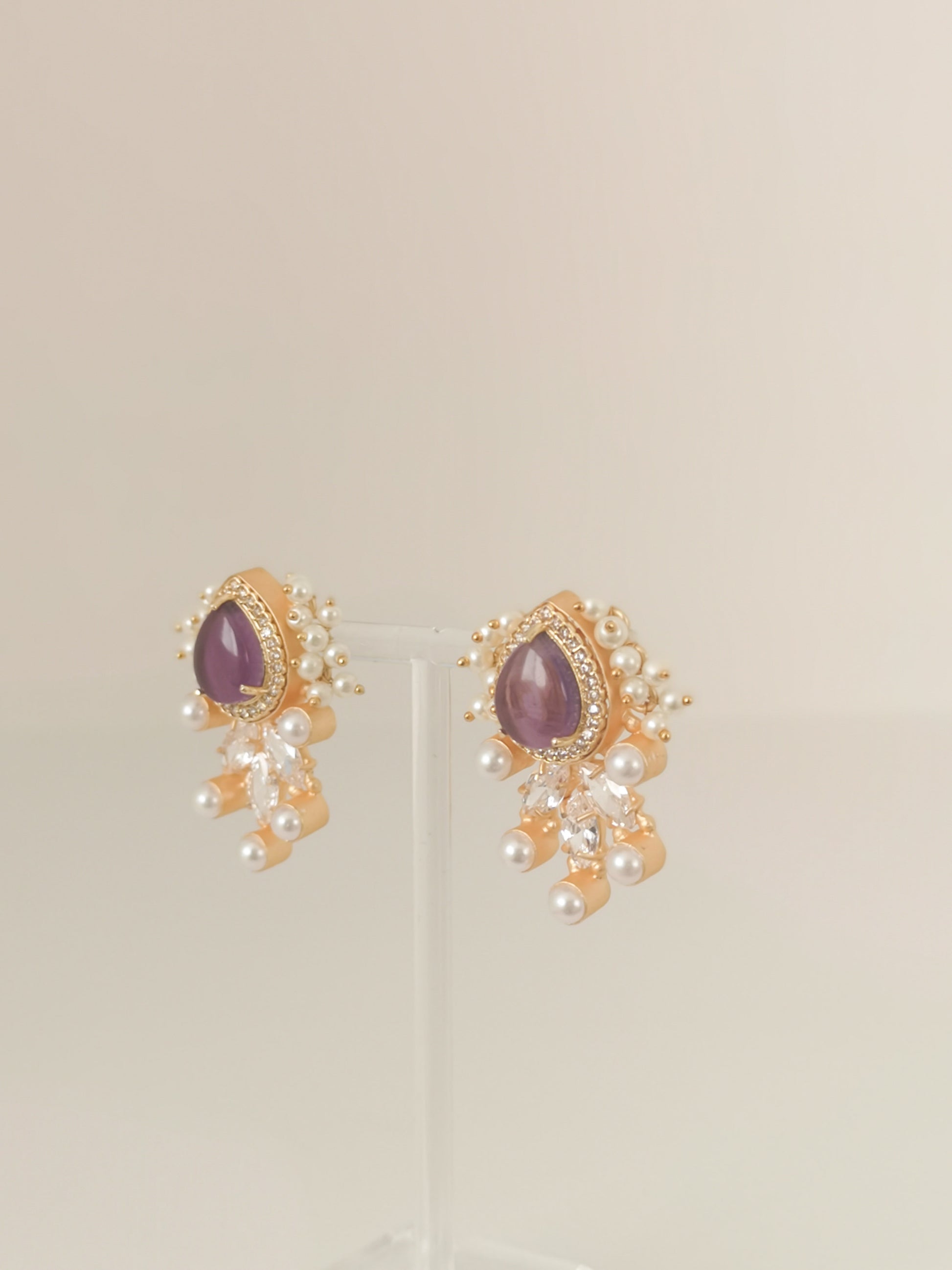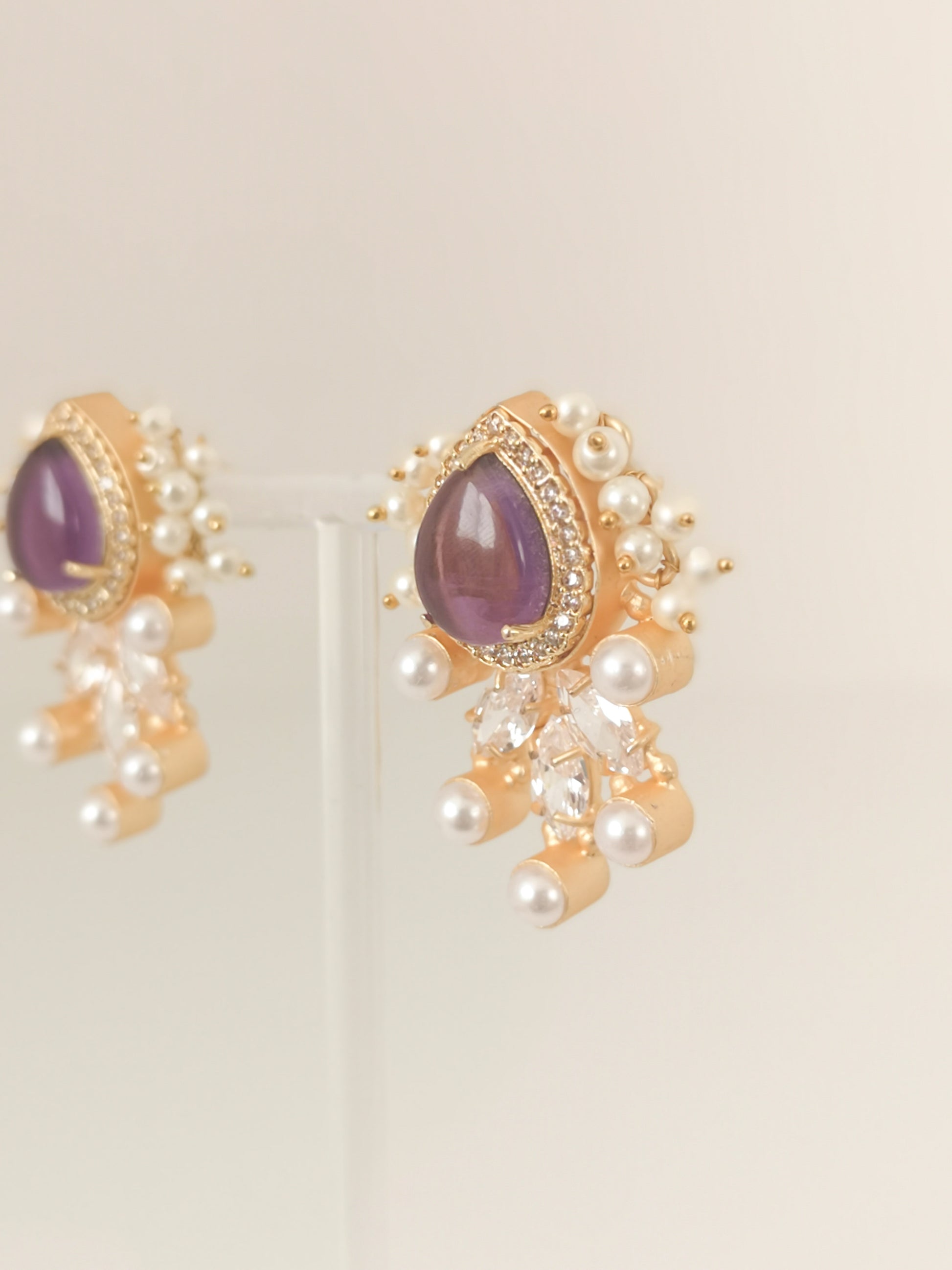 Classic Mimi Freshwater Pearl Collection - Amethyst Crystal, Zircon, Gold Plated - Purple Earrings