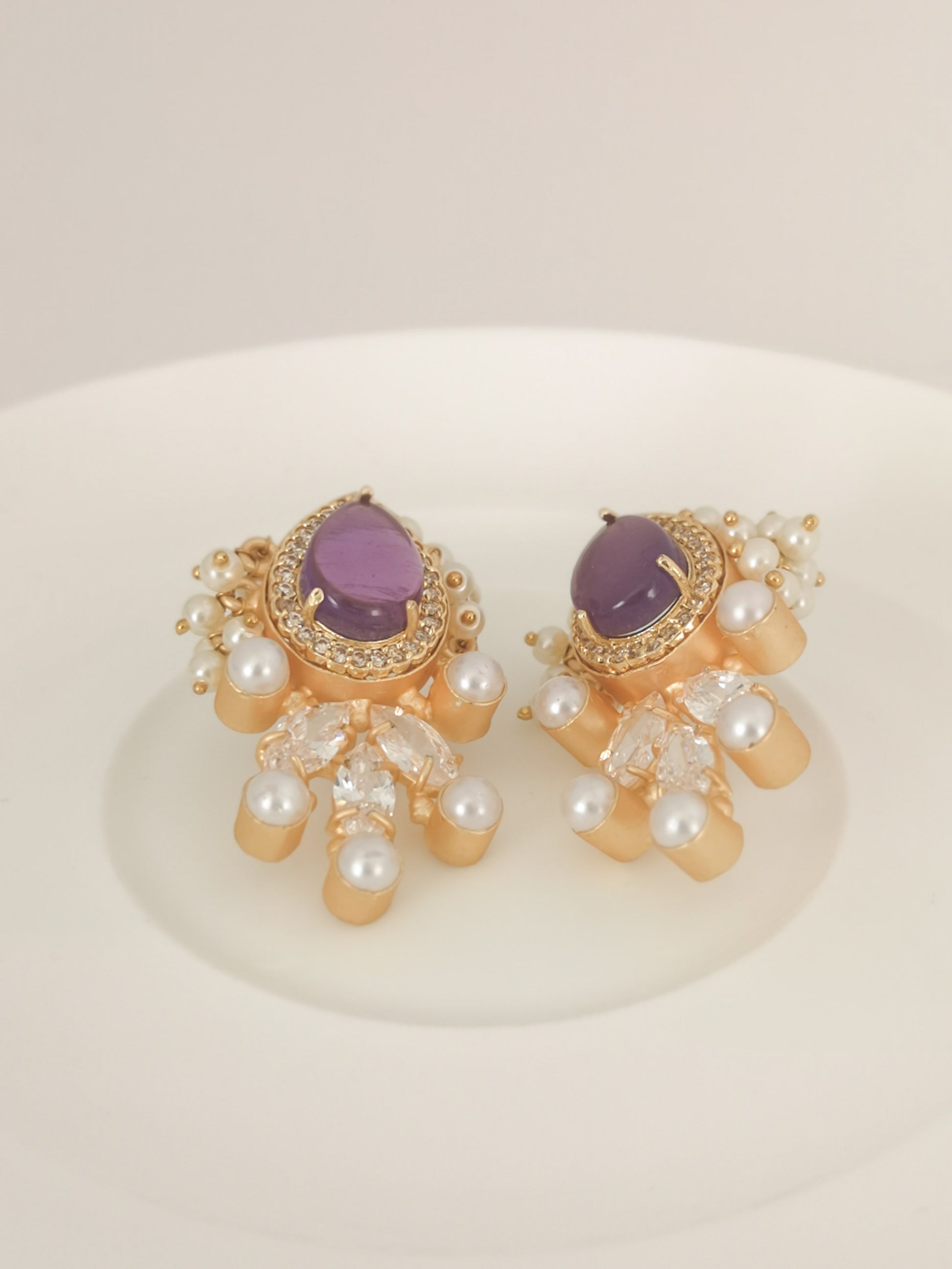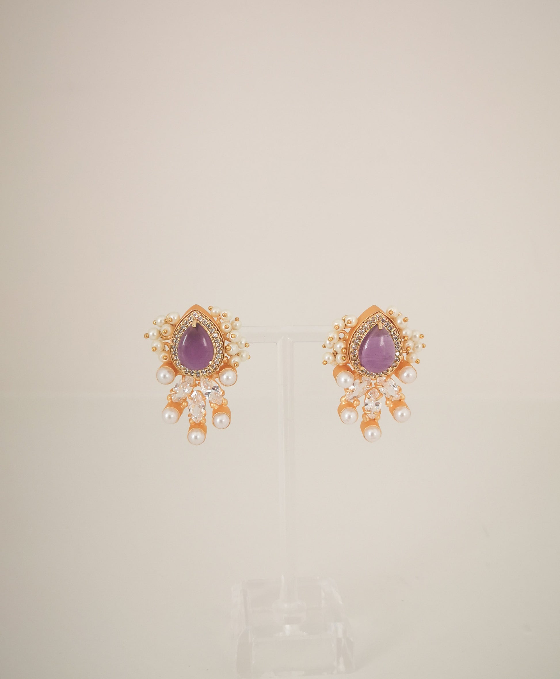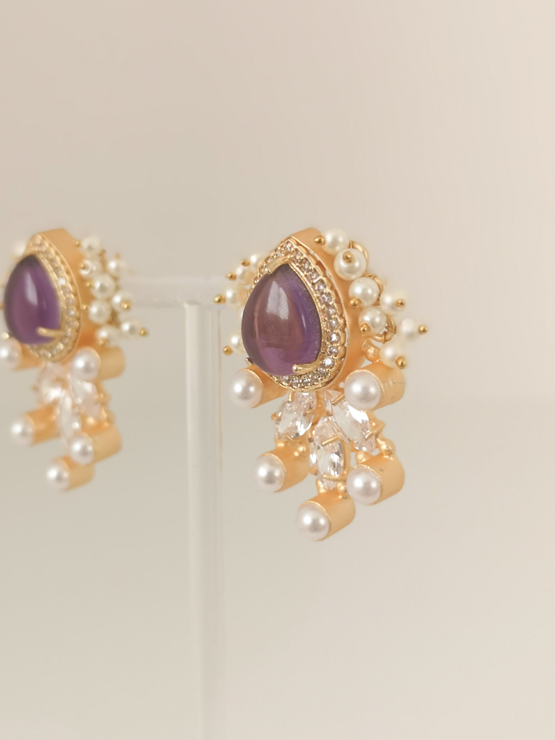 Classic Mimi Freshwater Pearl Collection - Amethyst Crystal, Zircon, Gold Plated - Purple Earrings
