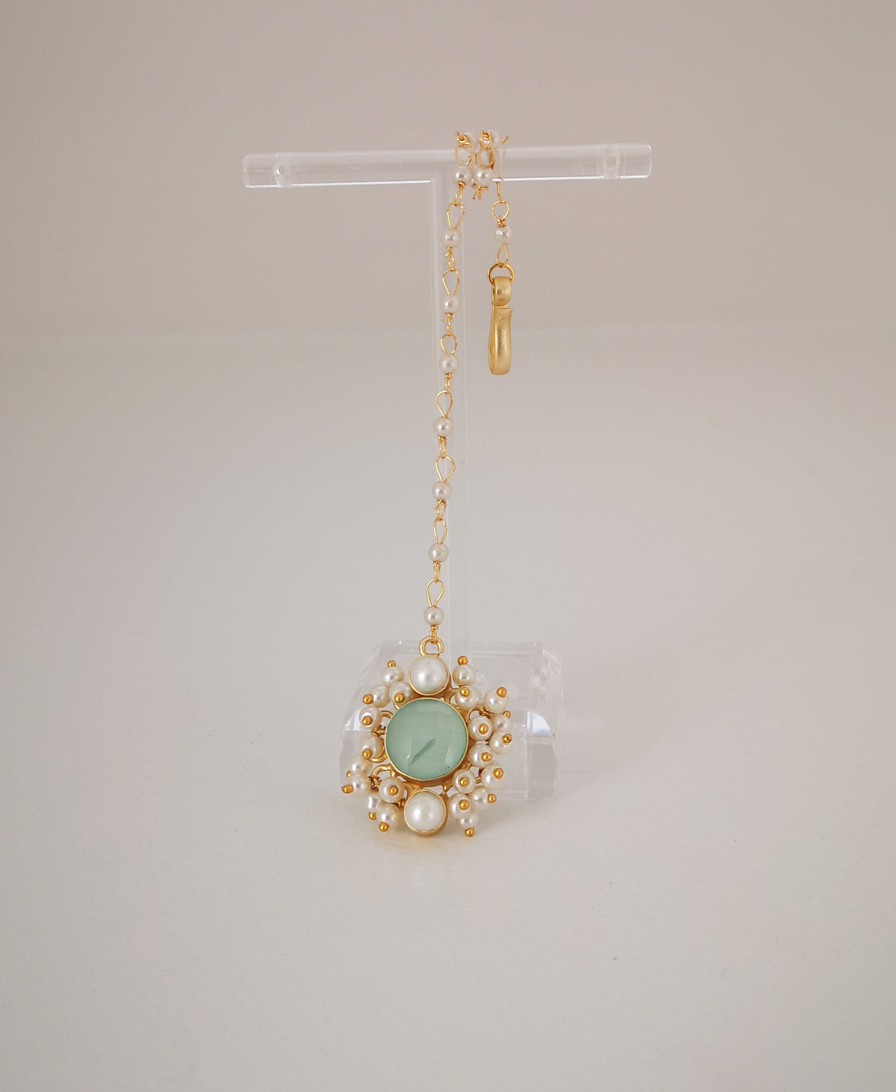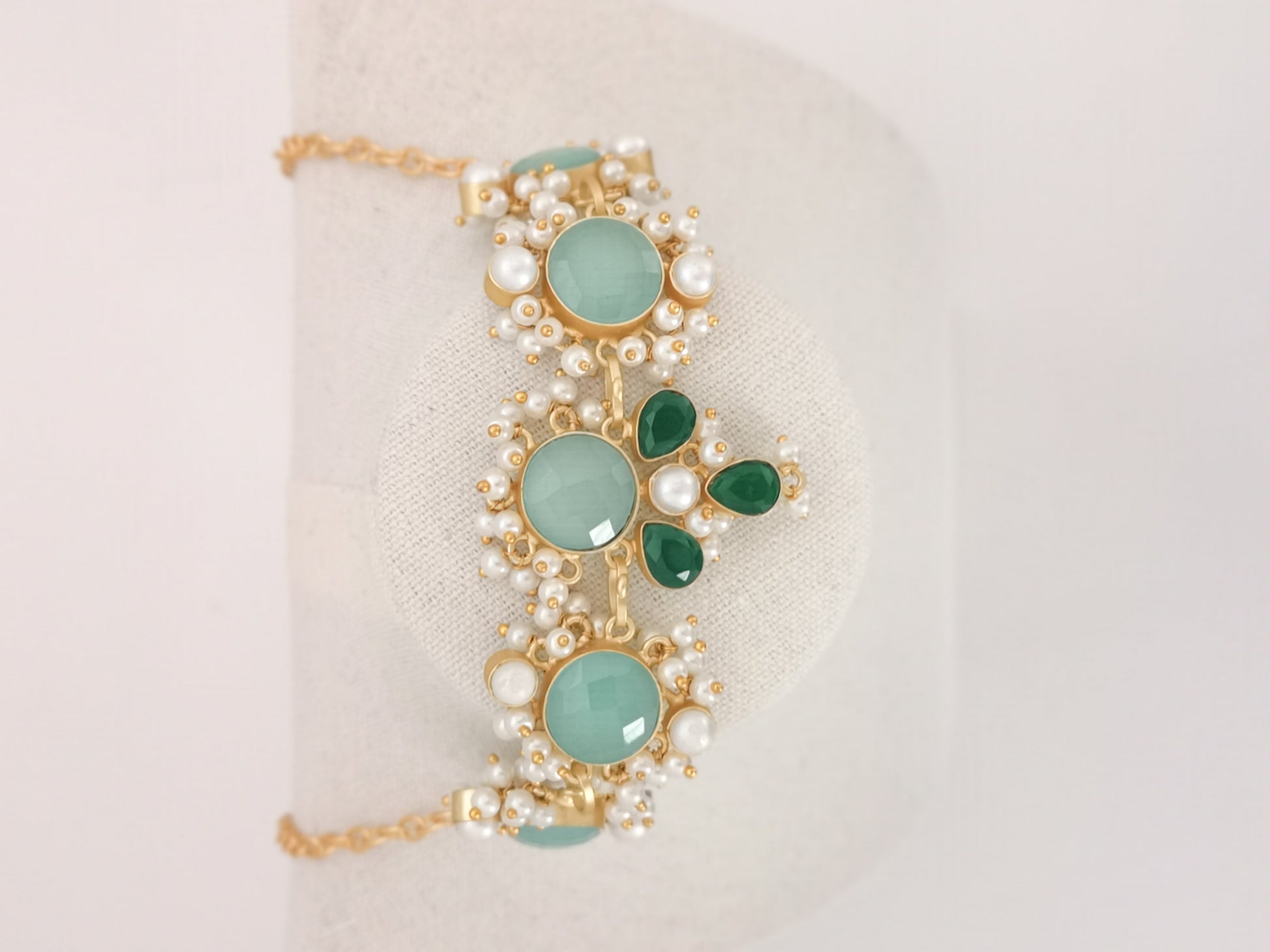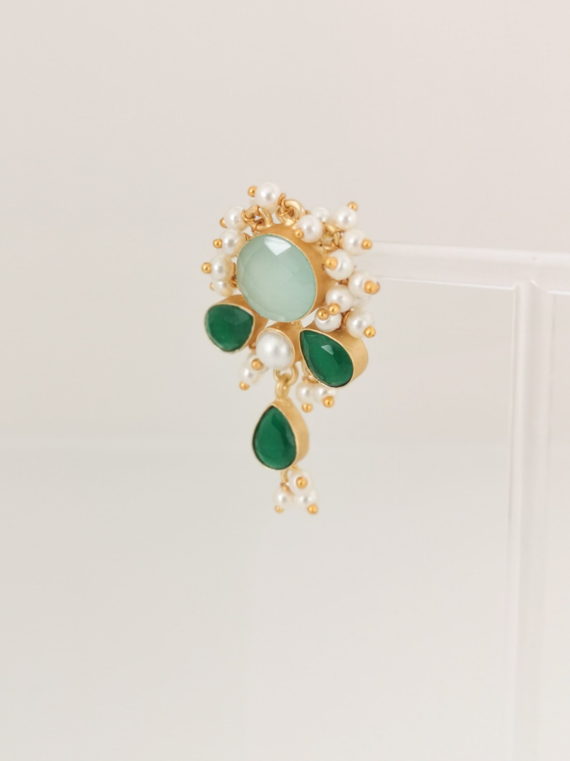 Classic Mimi Freshwater Pearl Collection - Chalcedony, Crystals, Pearls, Gold Plated - Light and dark Green
