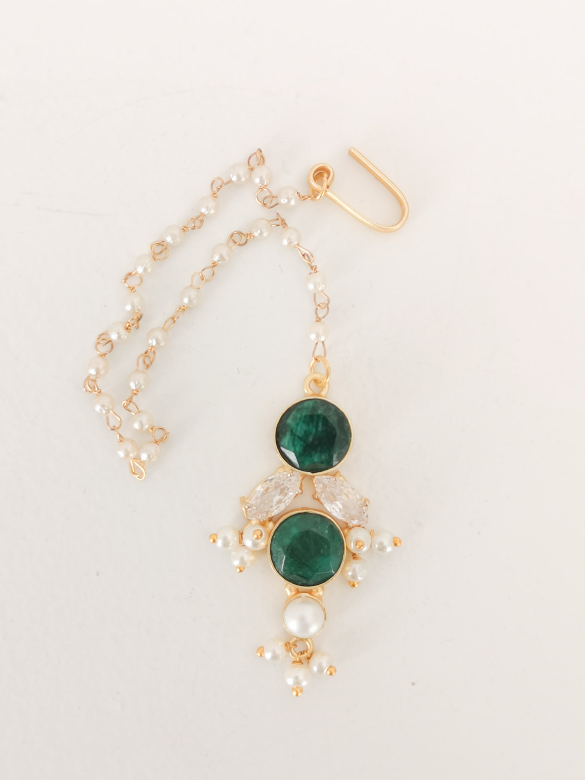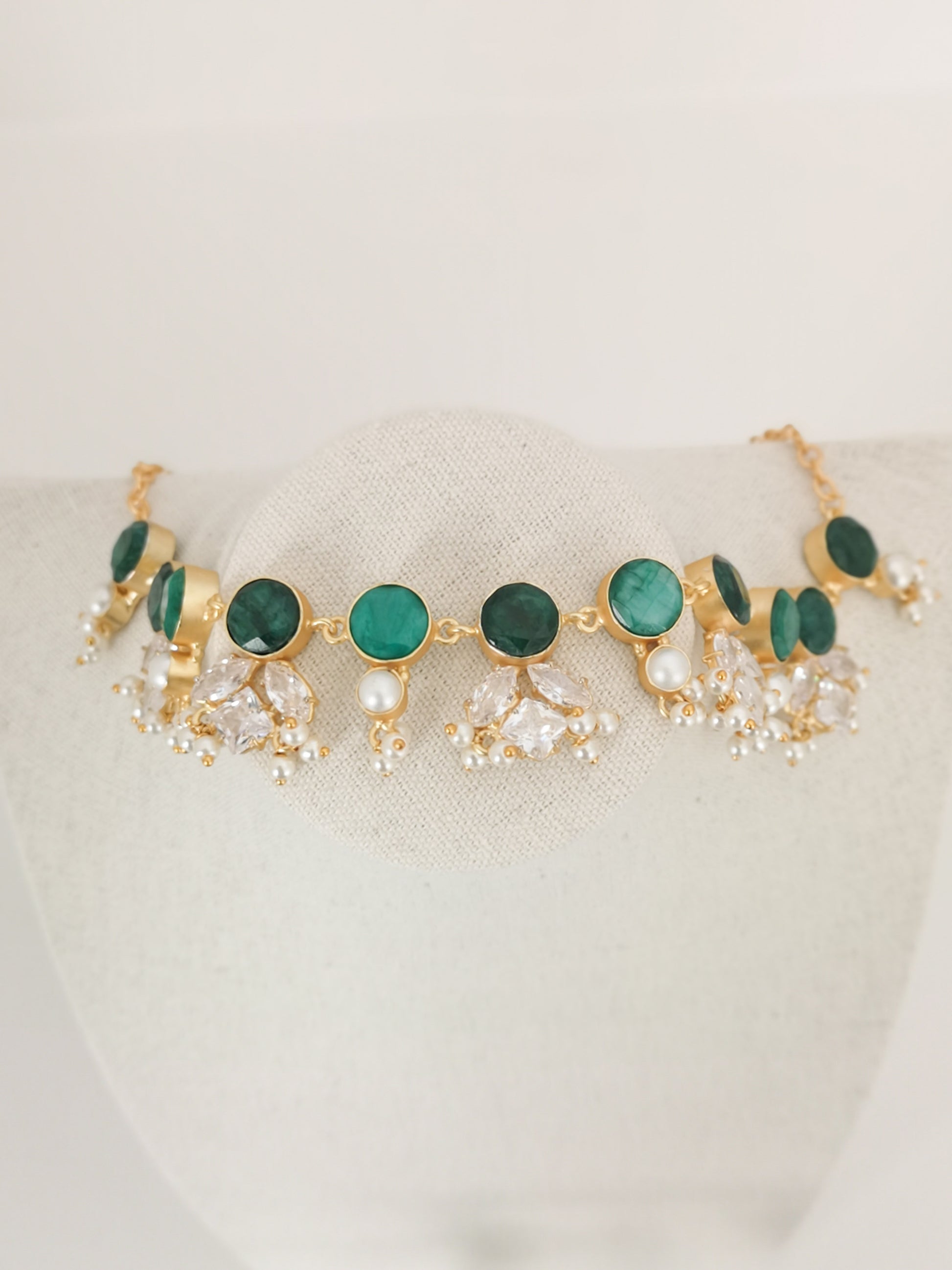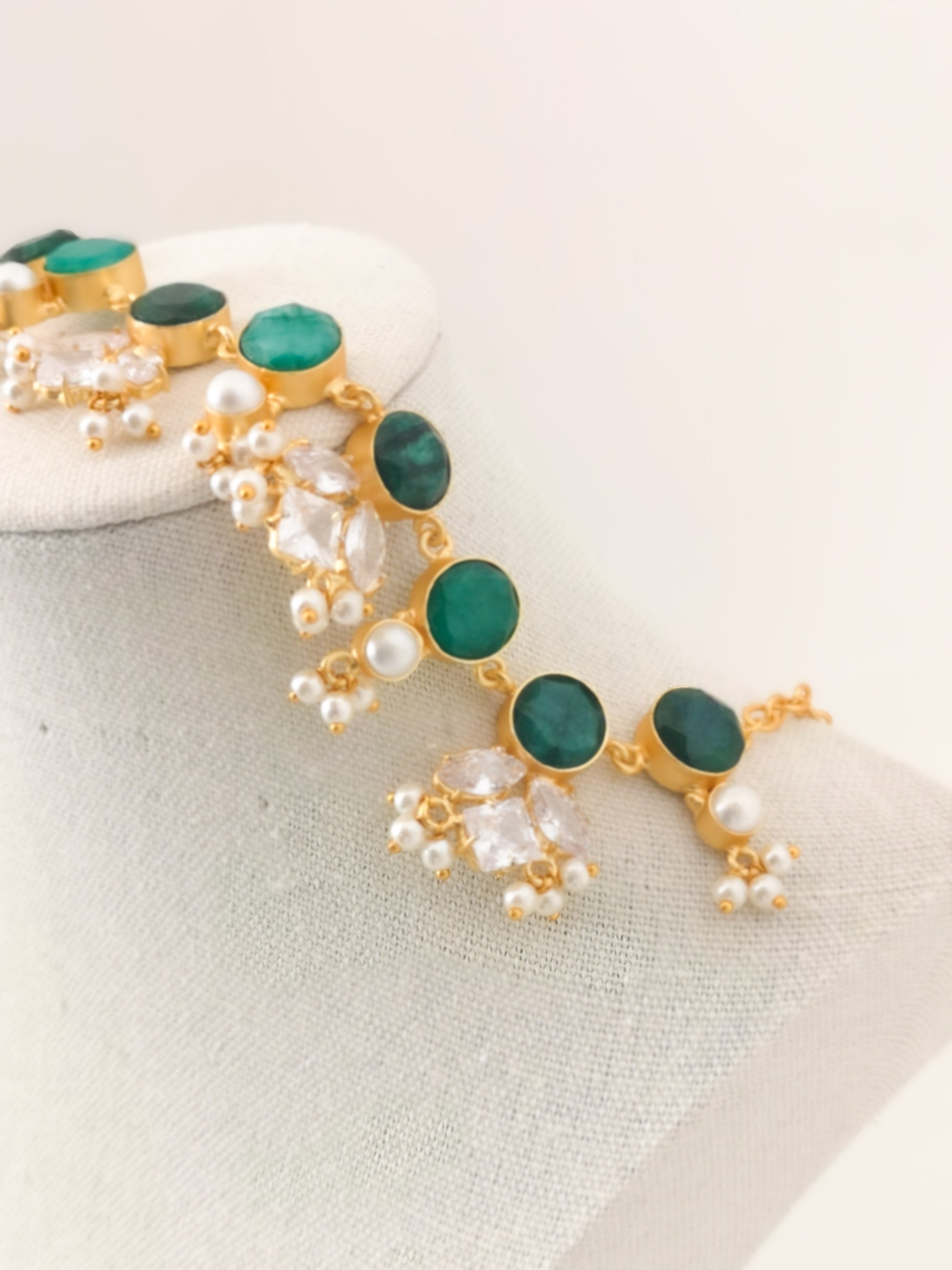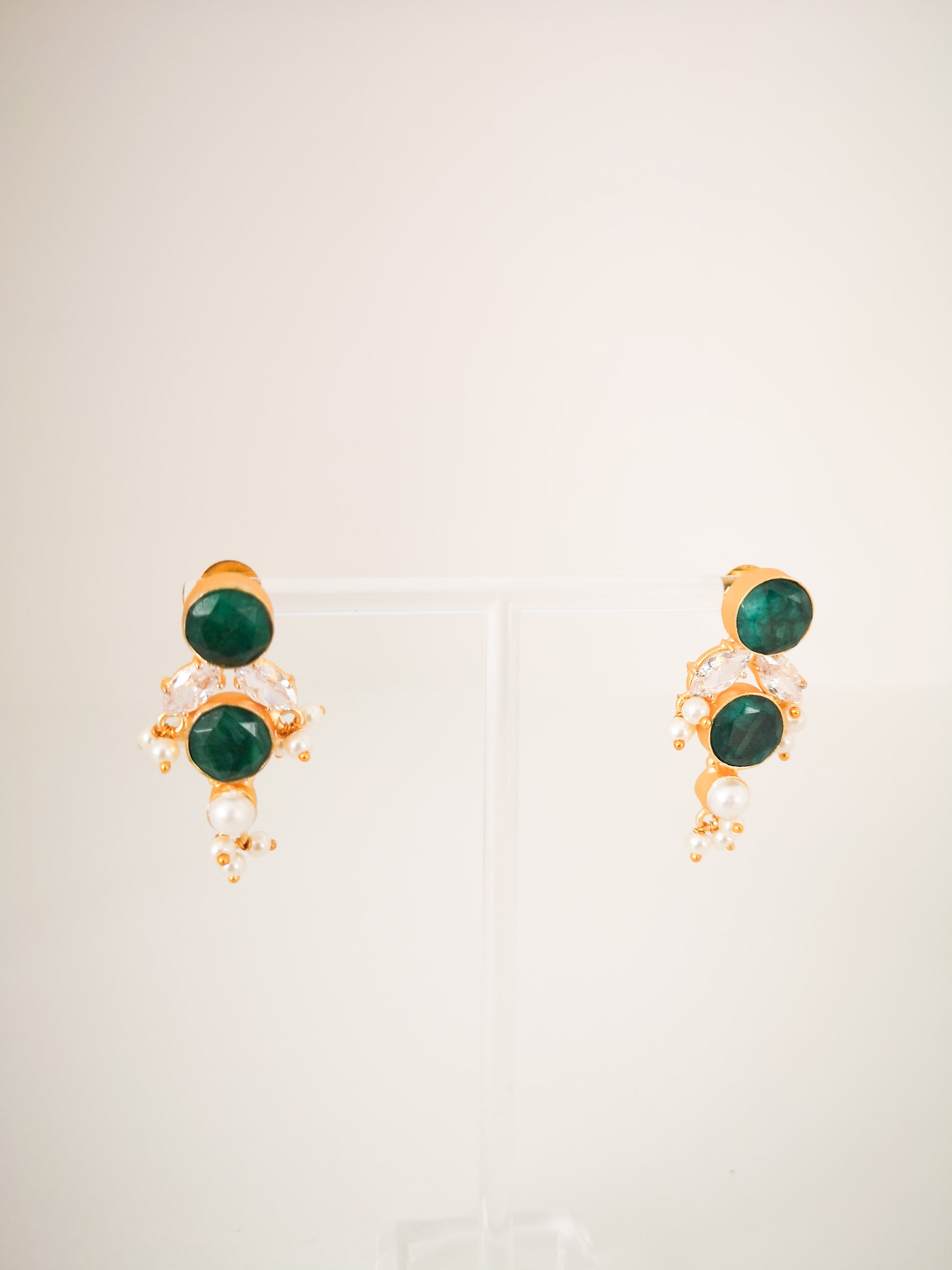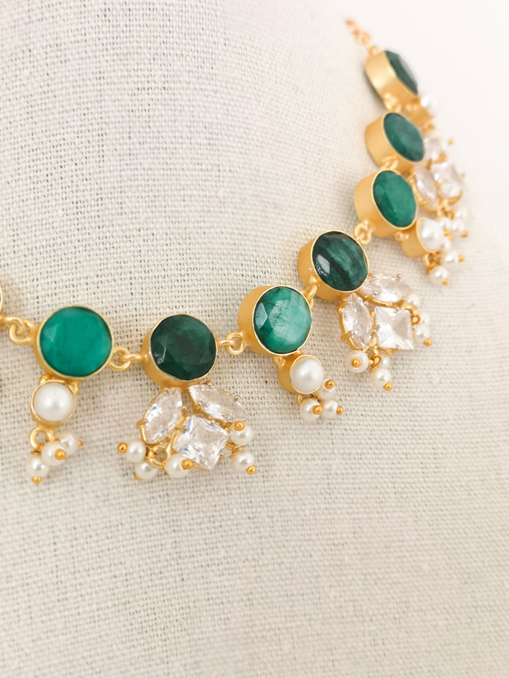 Classic Mimi Freshwater Pearl Collection - Zircon, Pearls, Natural Stones, Gold Plated - Dark Green
