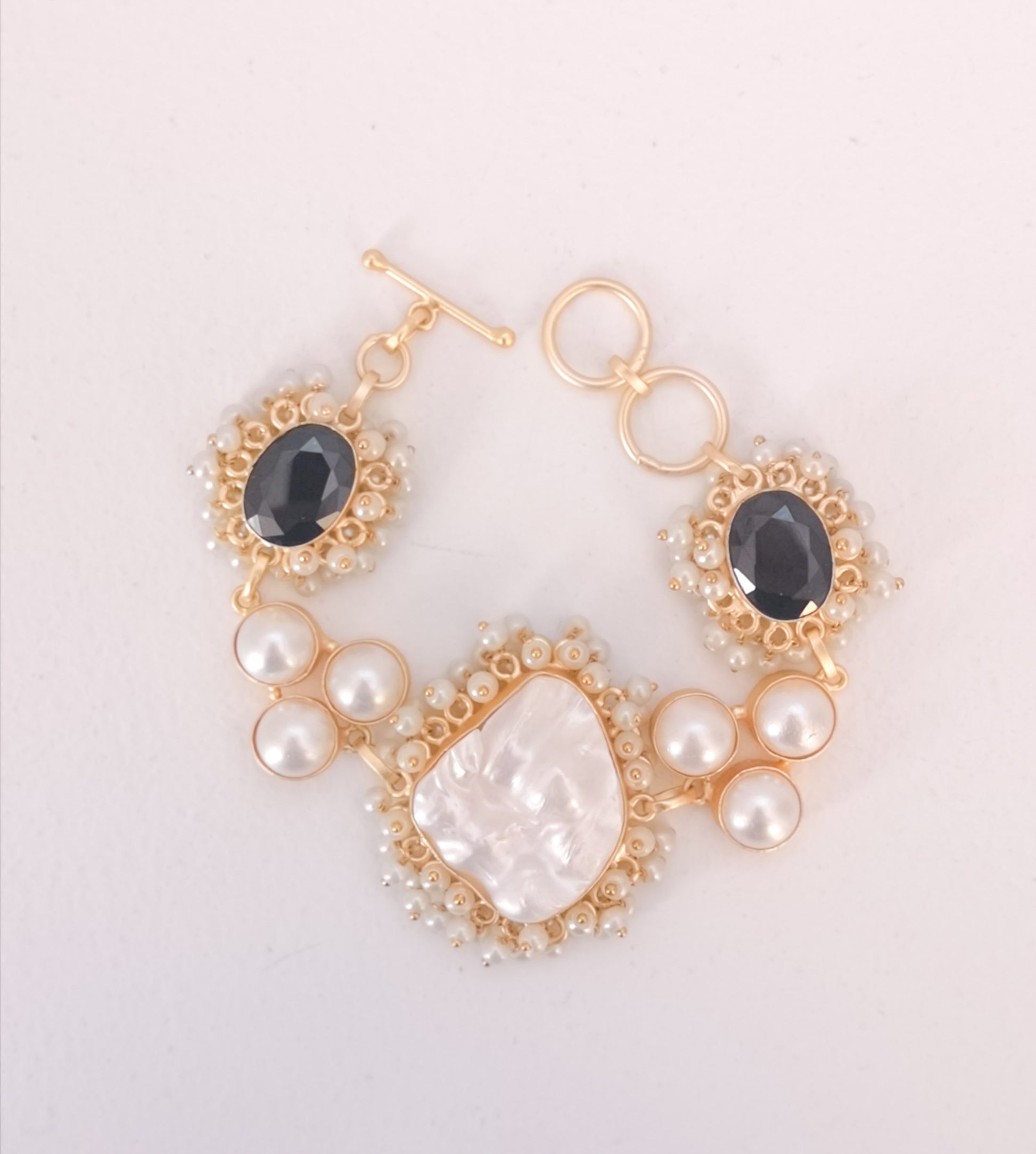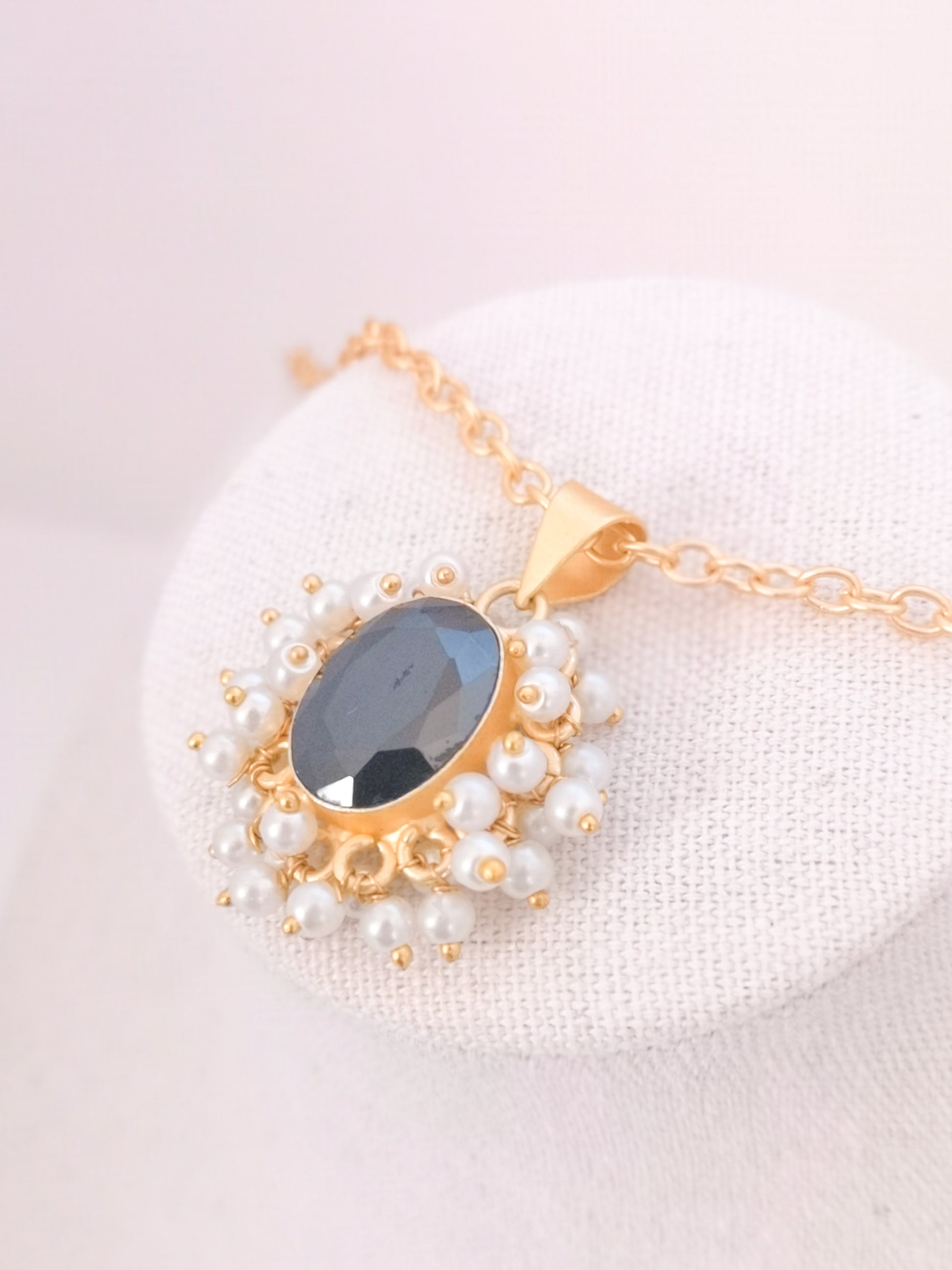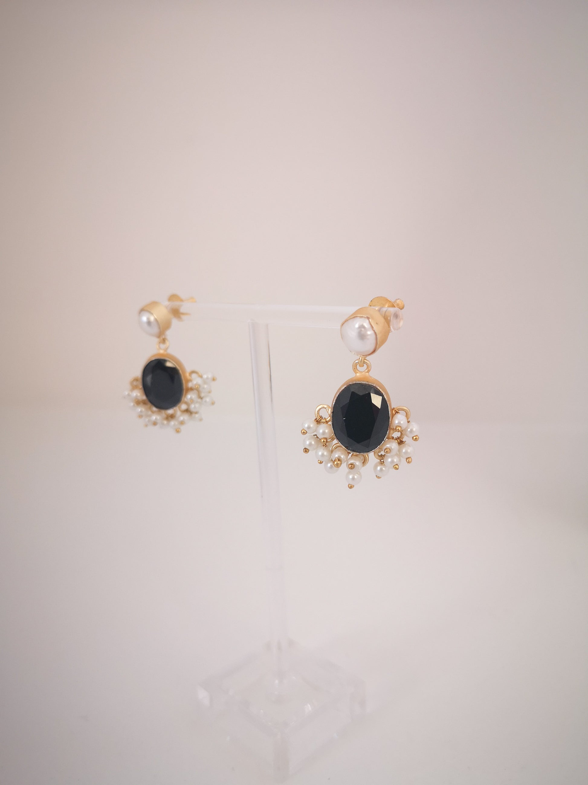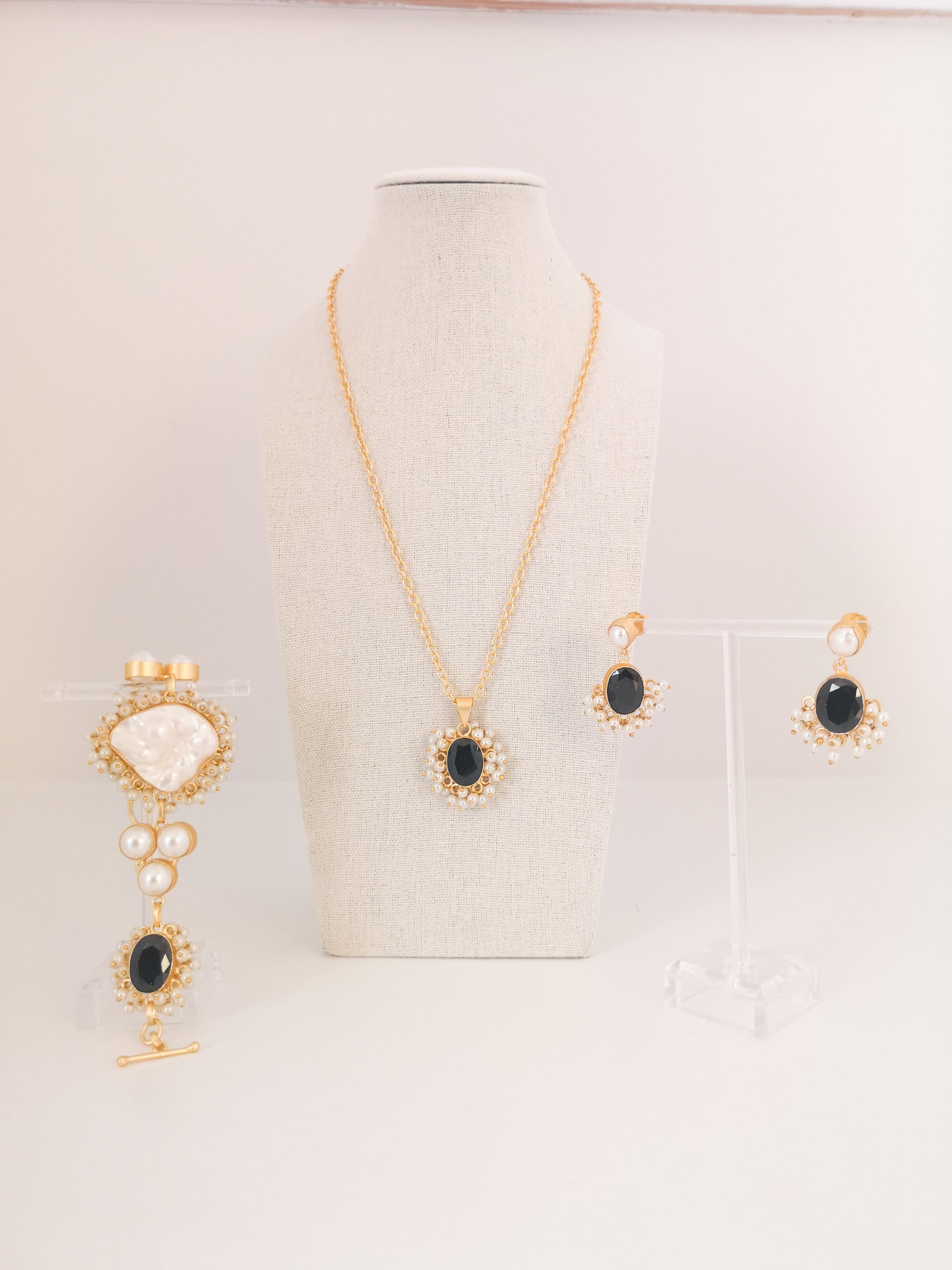 Classic Mimi Freshwater Pearl, Gold Plated, Natural Stone Set - BLACK