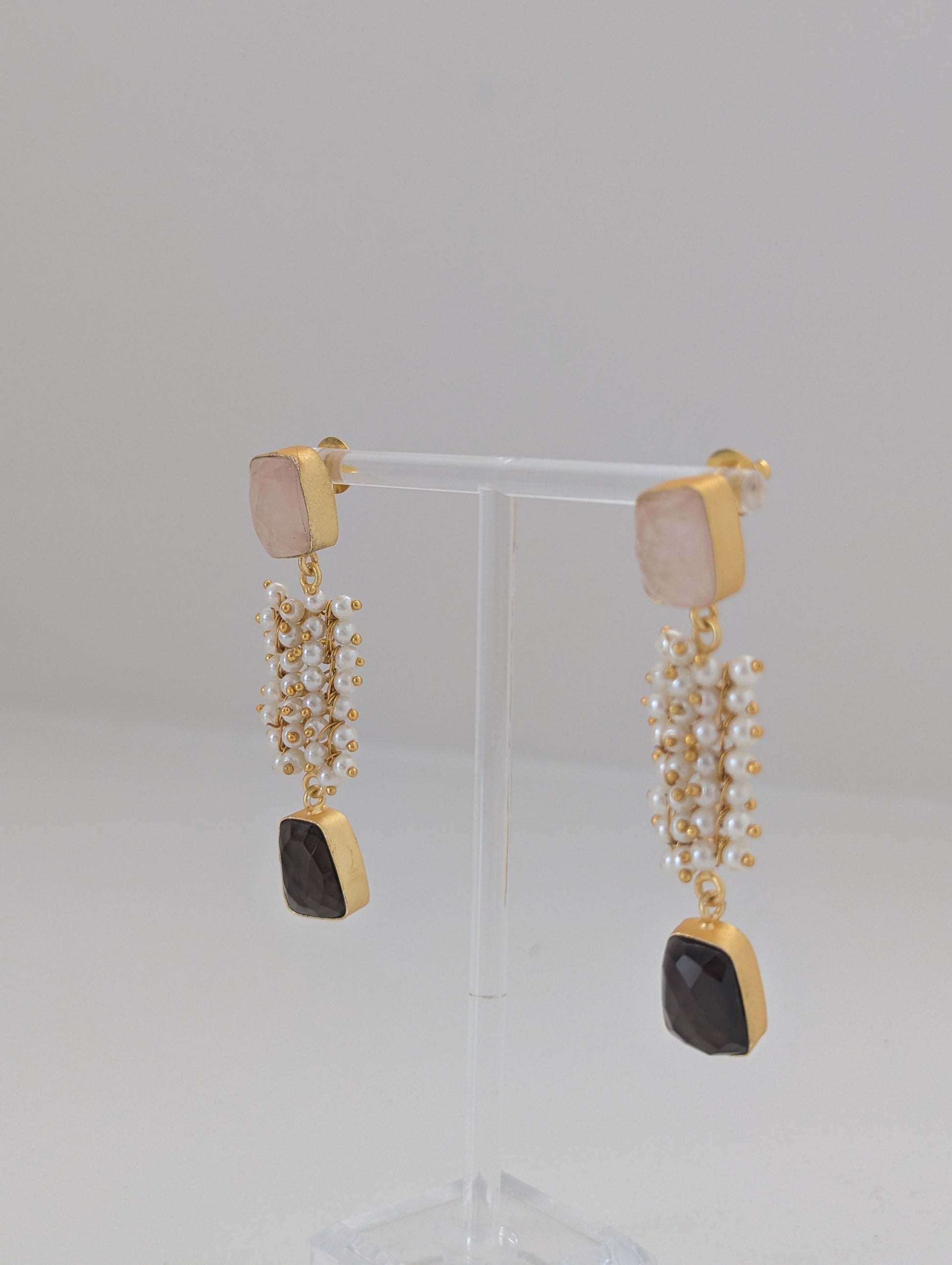 Classic Mimi - Freshwater Pearls Collection - Rose Quartz, Smoky Quartz and Pearls