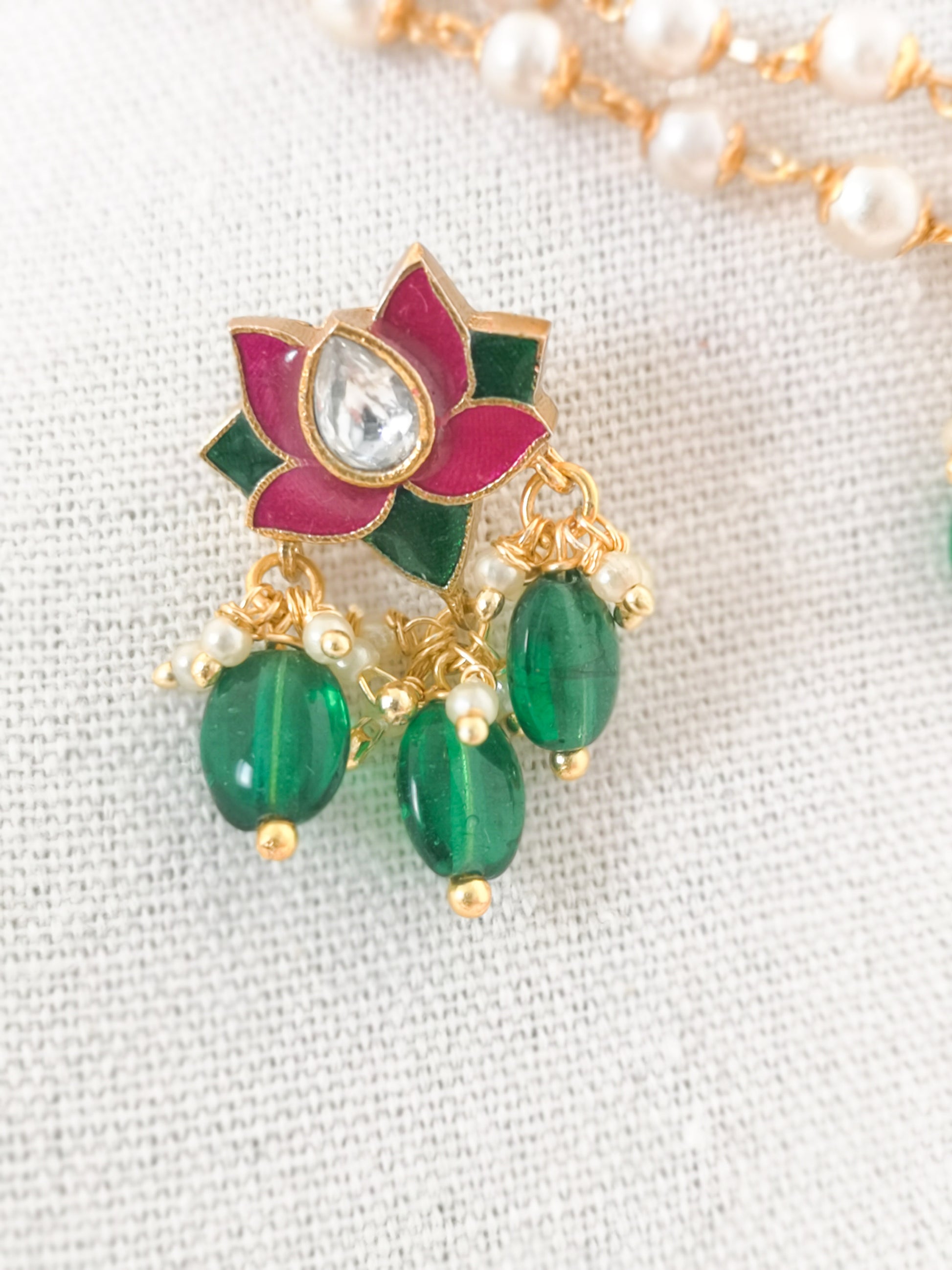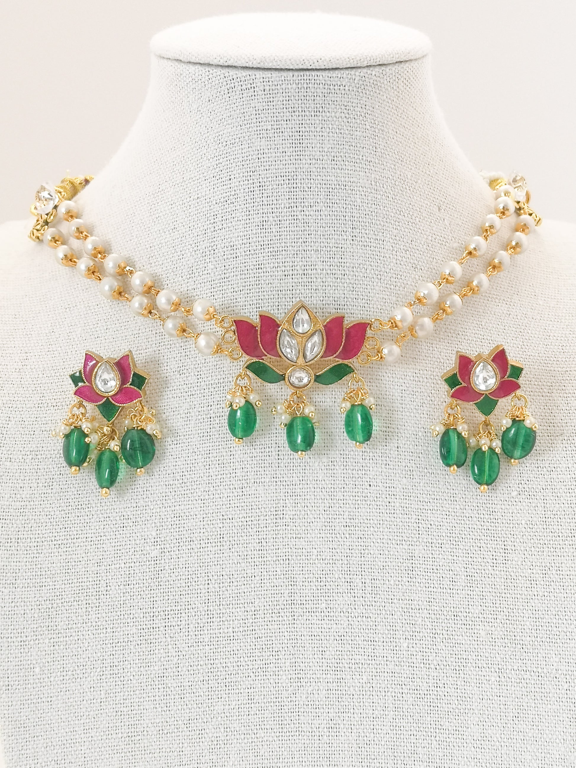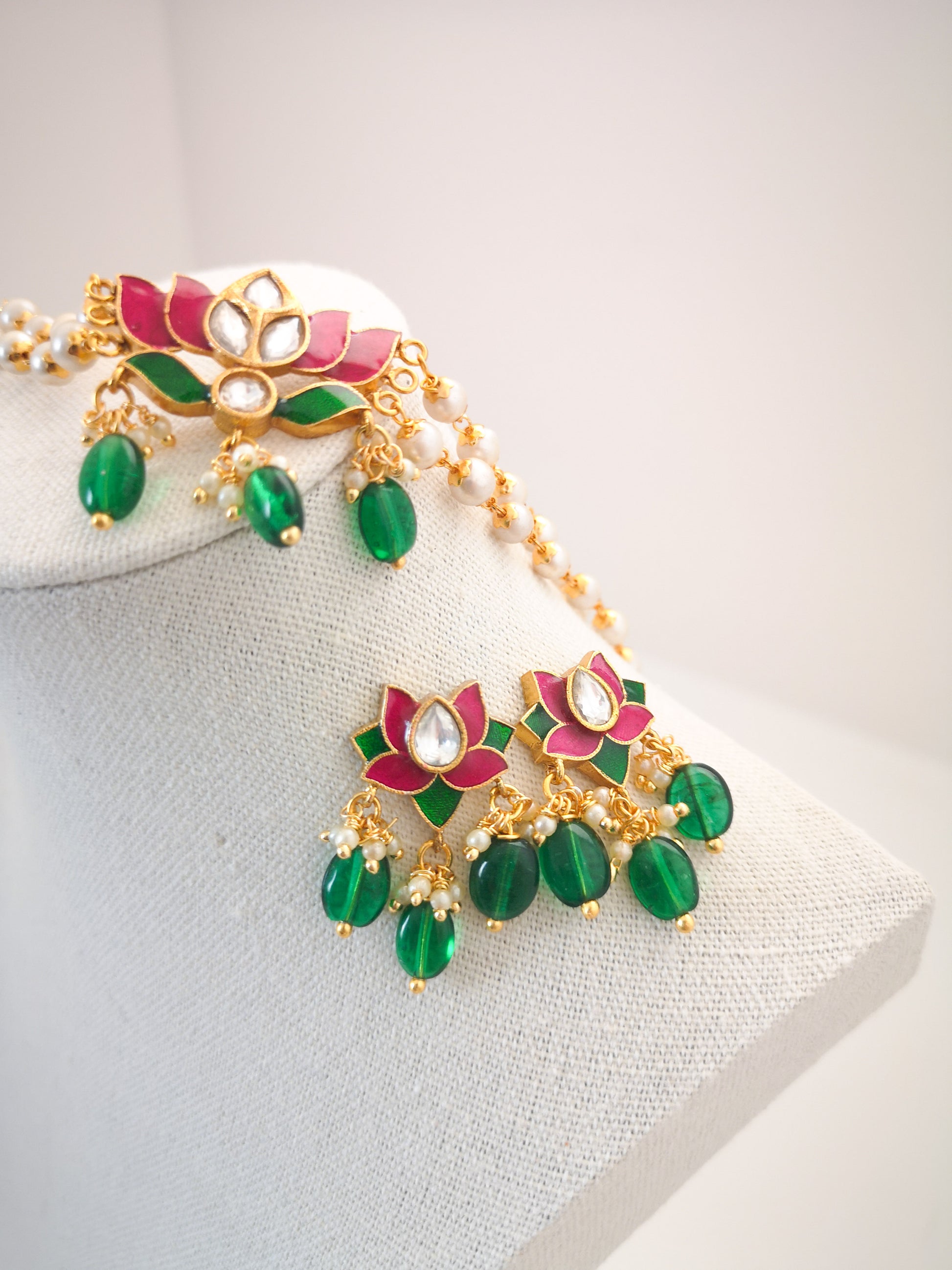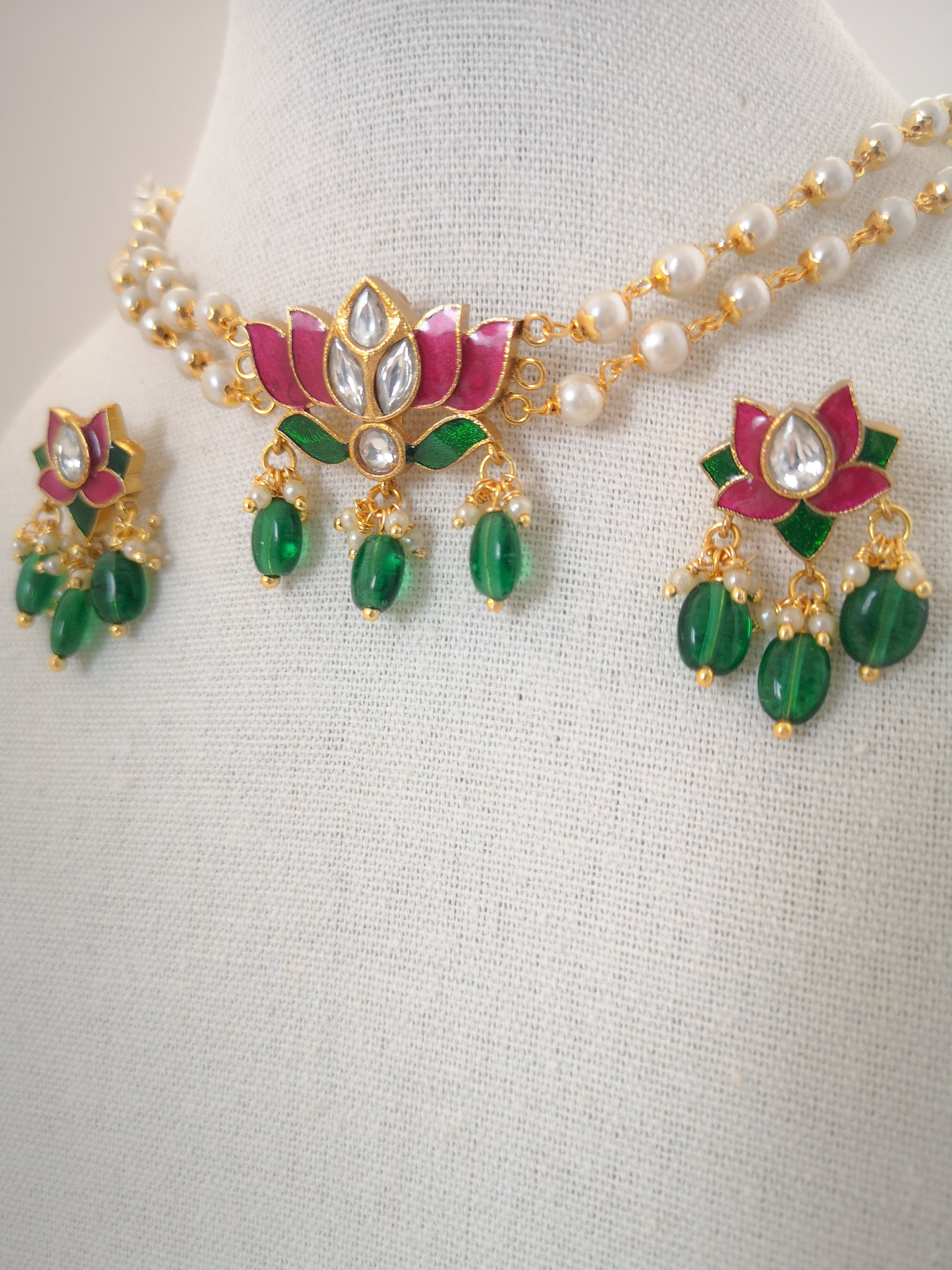 Lotus Choker Set (Necklace and Earrings) - Magenta and Green