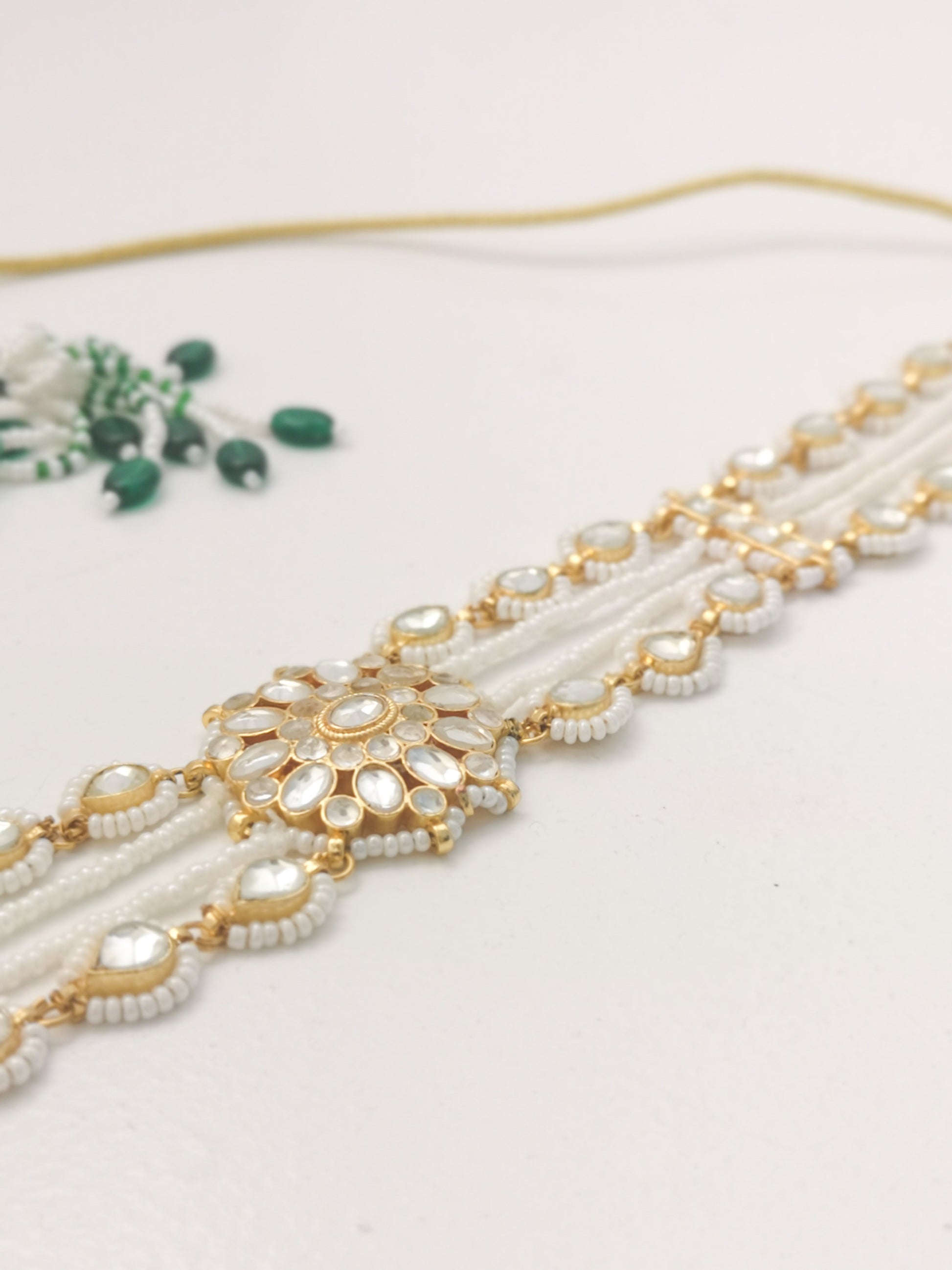 Our Pachi Kundan collection is Brass based, stones set in silver foil and gold plated, handcrafted with precious and semi precious beading.