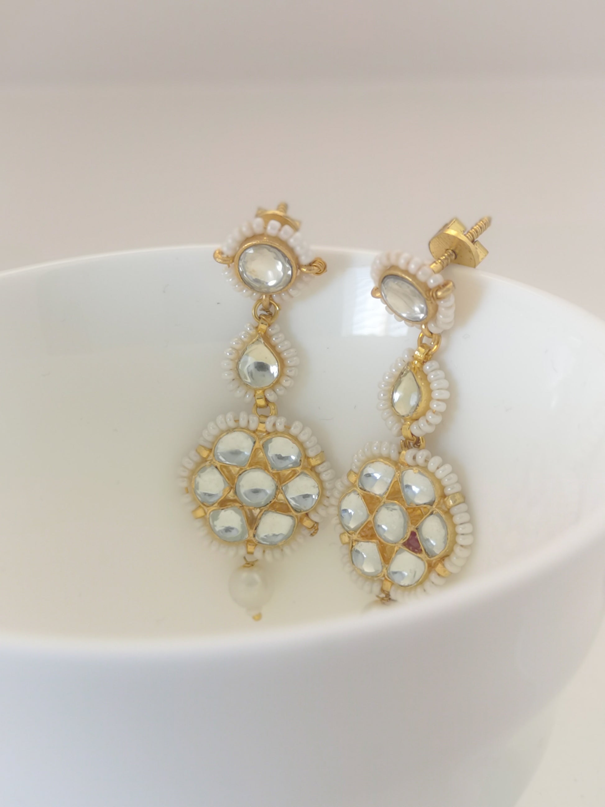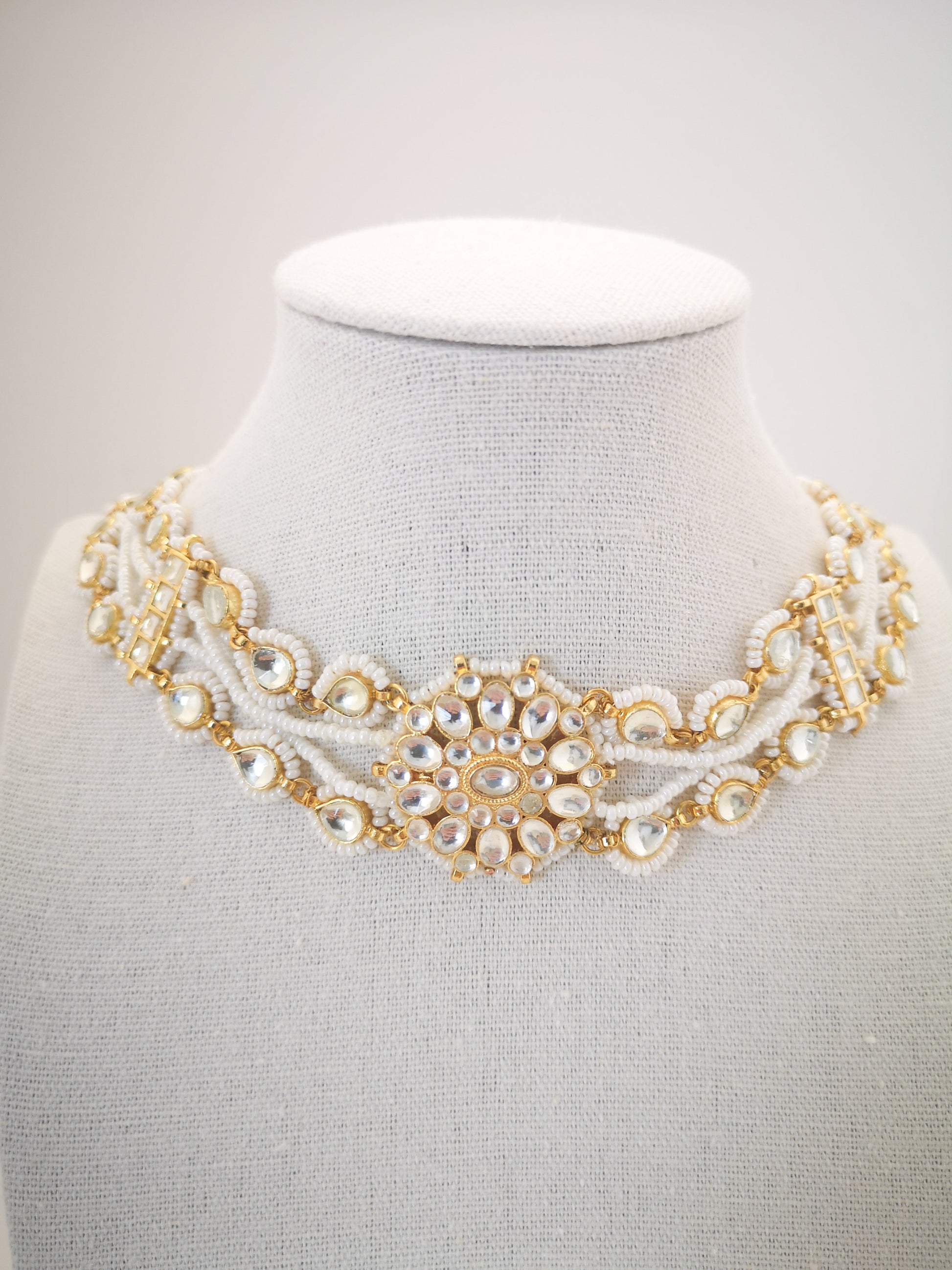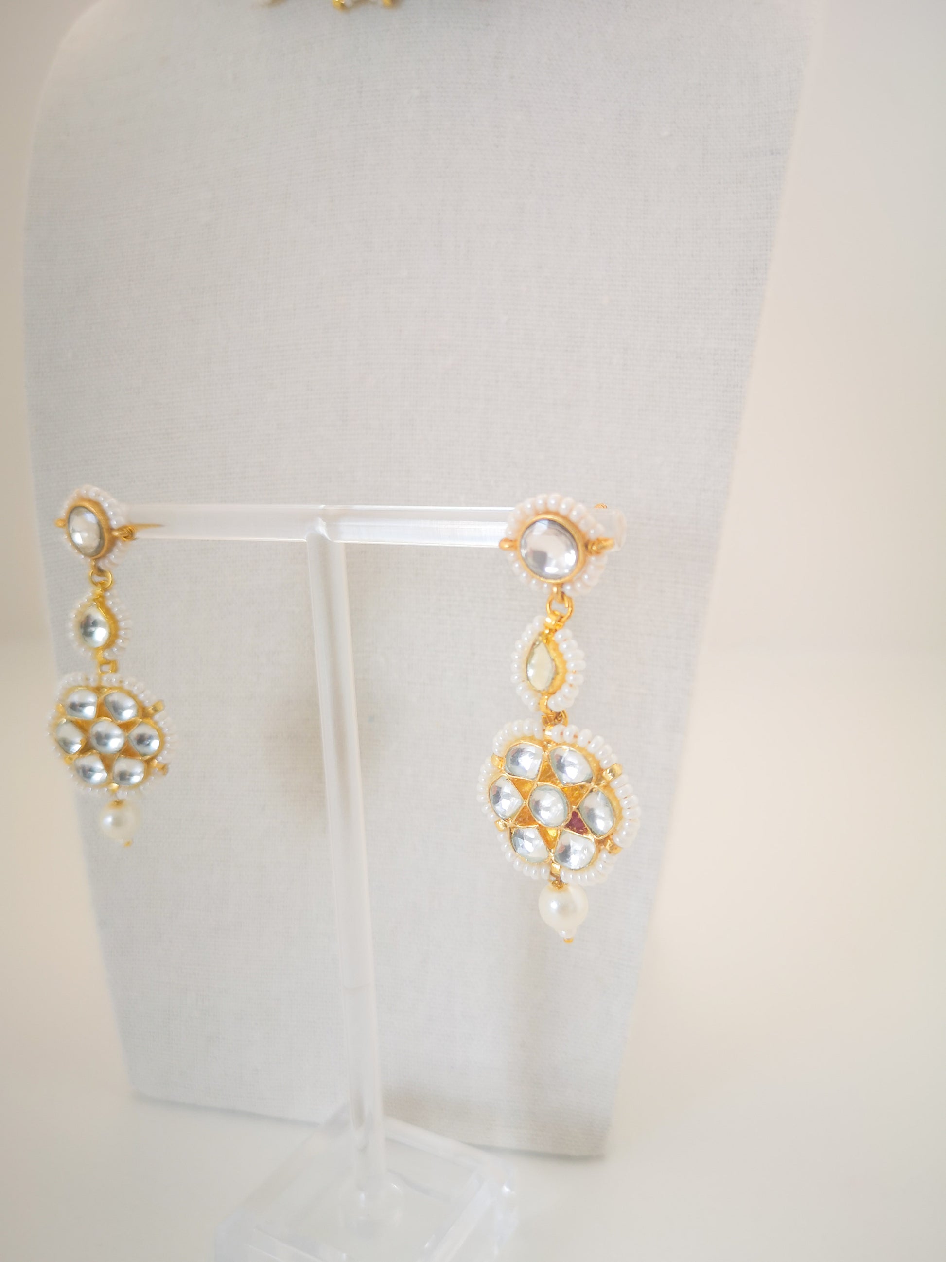 Pachi Kundan Set (earrings and necklace) - Pearls / Beige