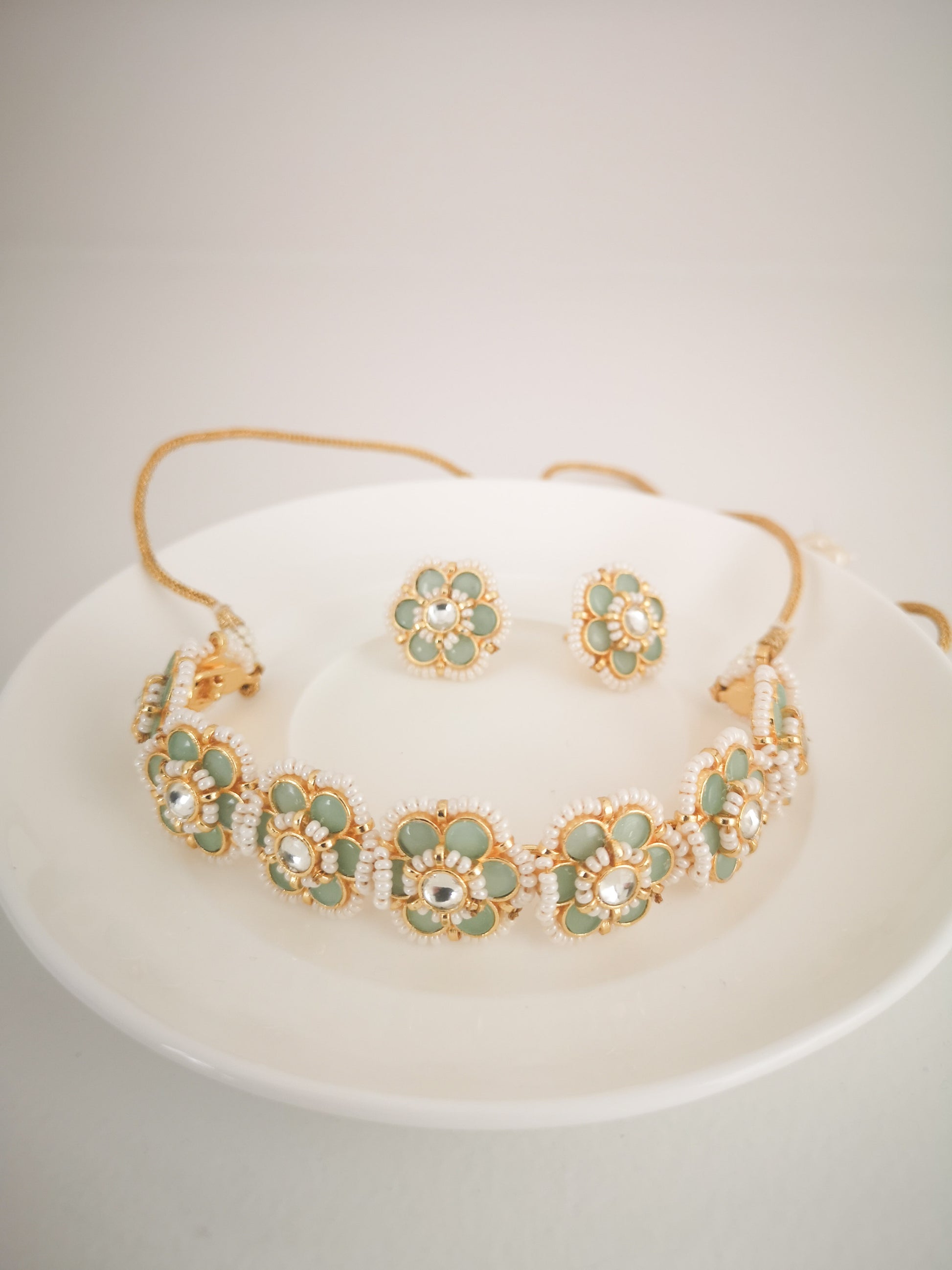 Our Pachi Kundan collection is brass based, stones set in silver foil and gold plated, handcrafted with precious and semi precious beading.