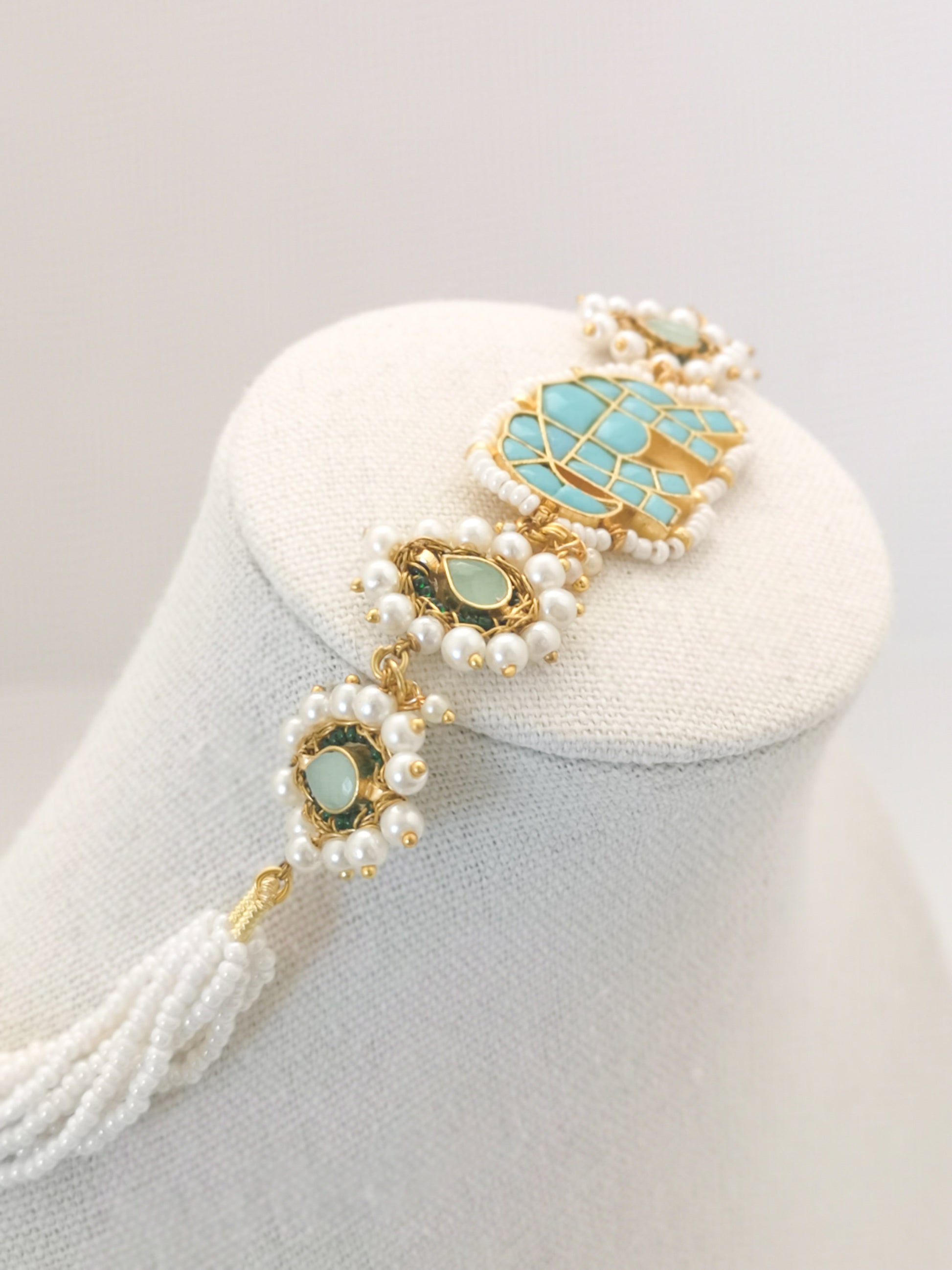 Our Pachi Kundan collection is Brass based, stones set in silver foil and gold plated, handcrafted with precious and semi precious beading.