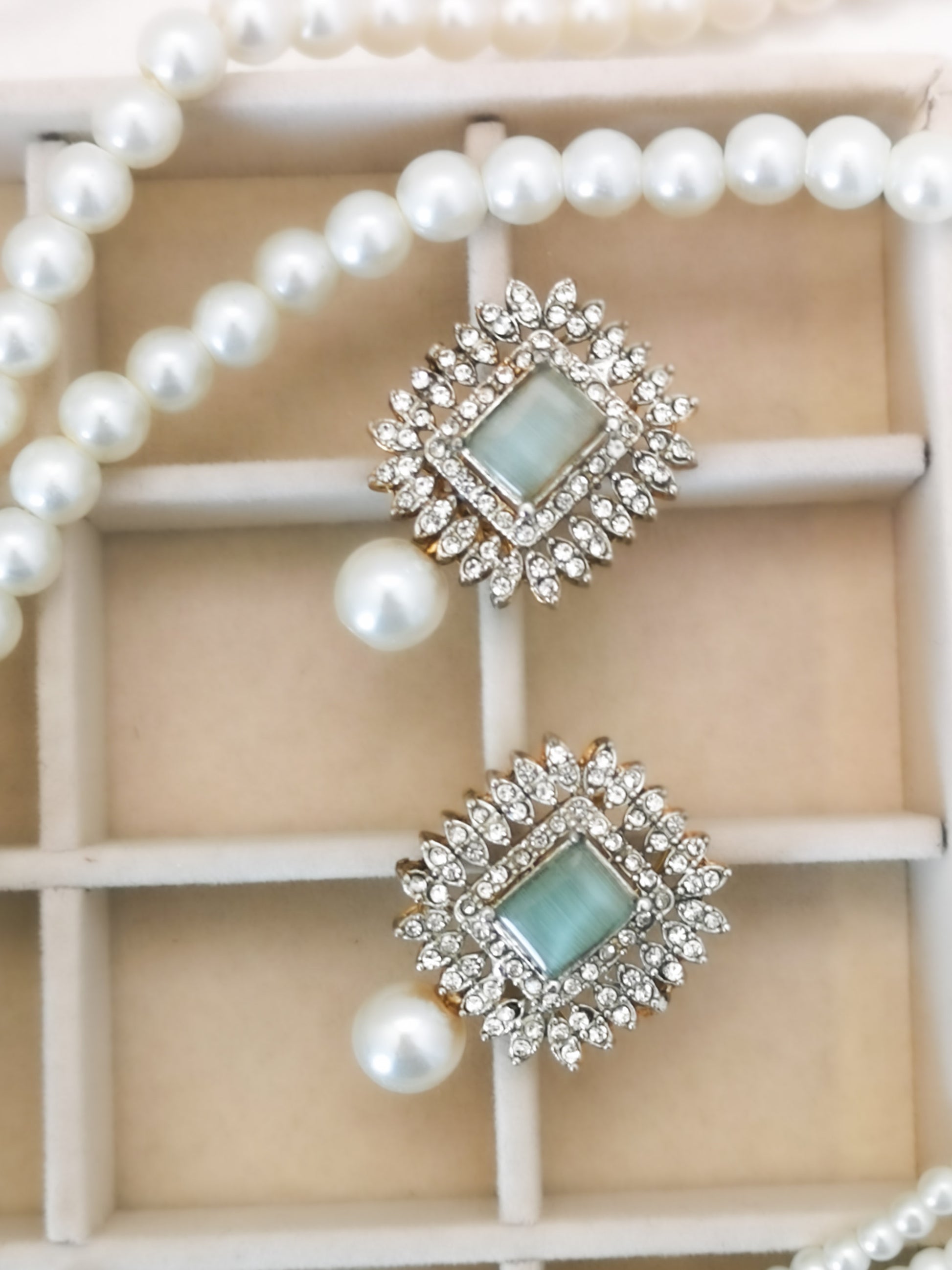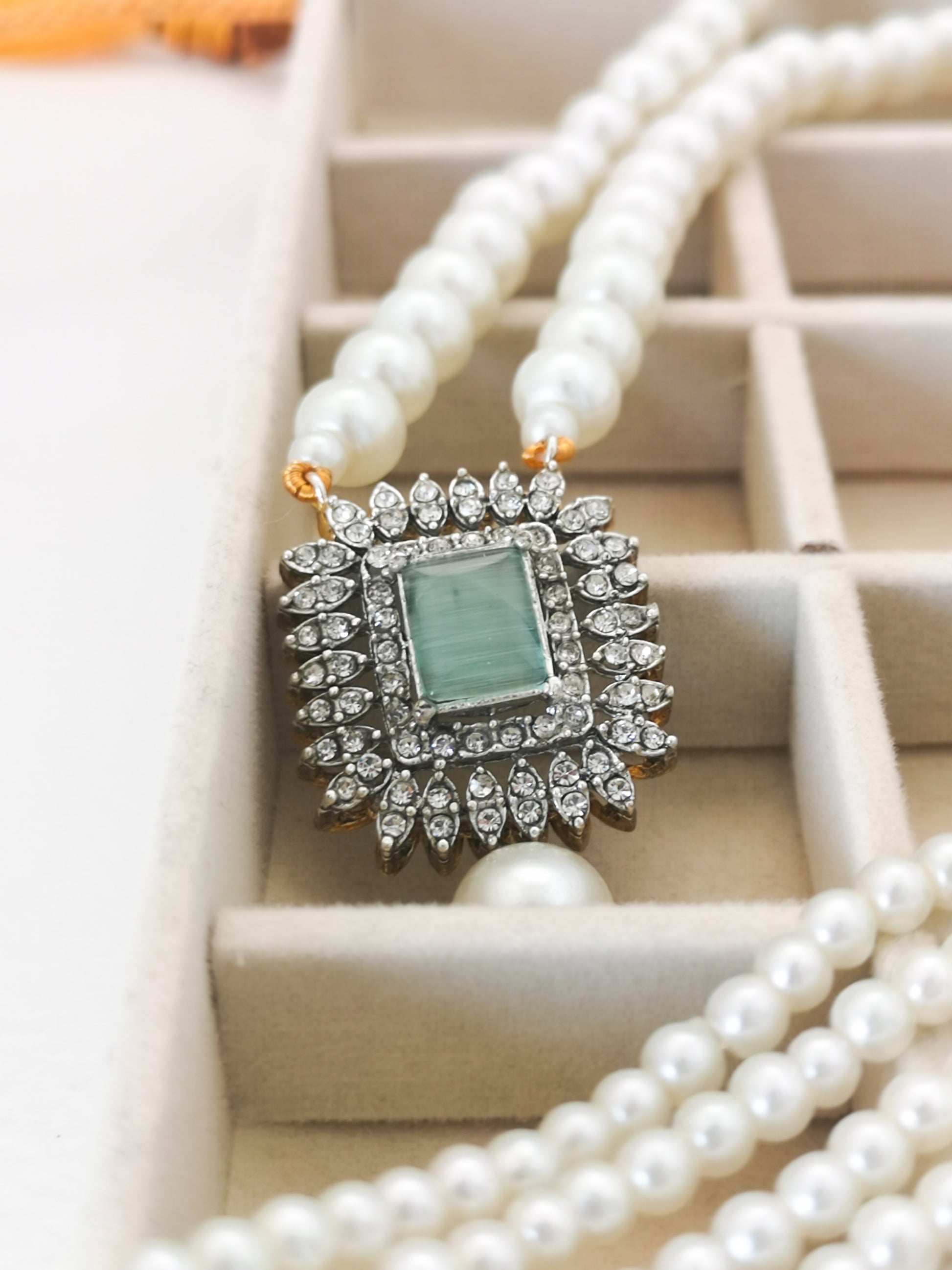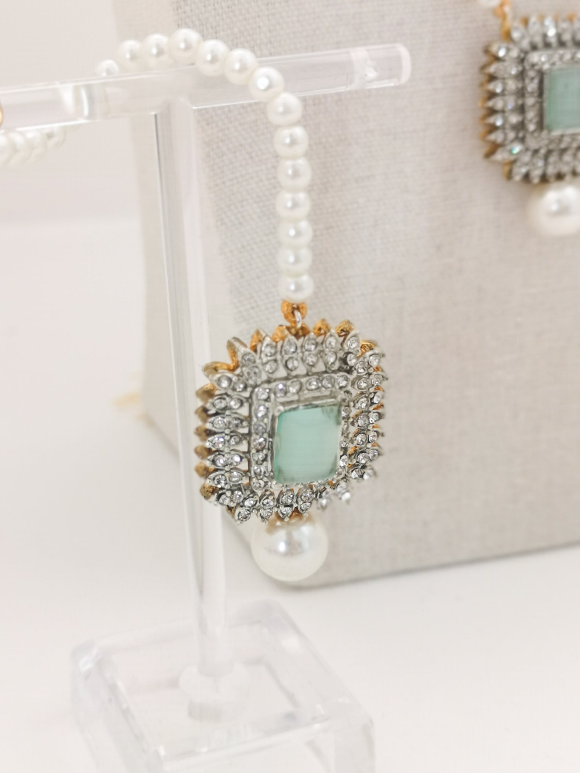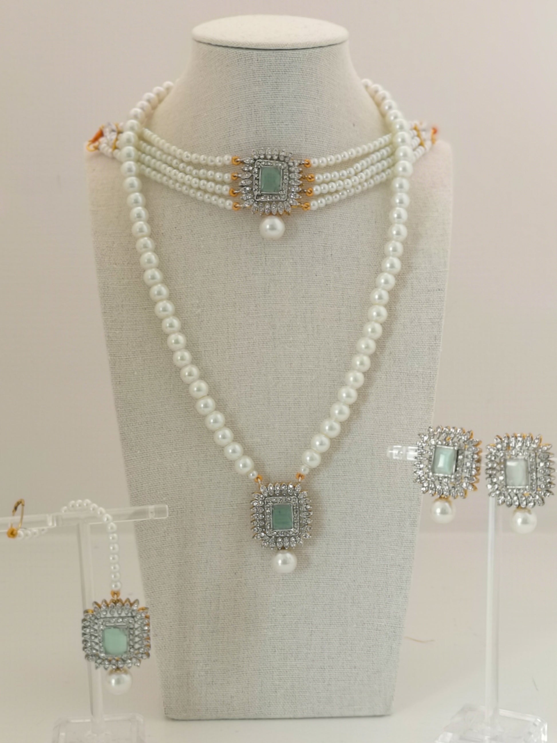 Pearl Choker Set - Mint (Choker, Earrings, Pendant Necklace and Teeka)