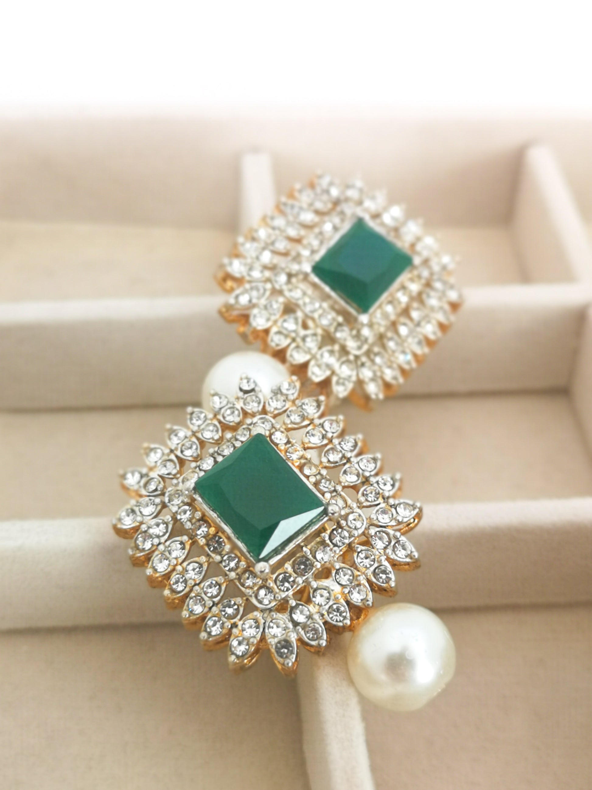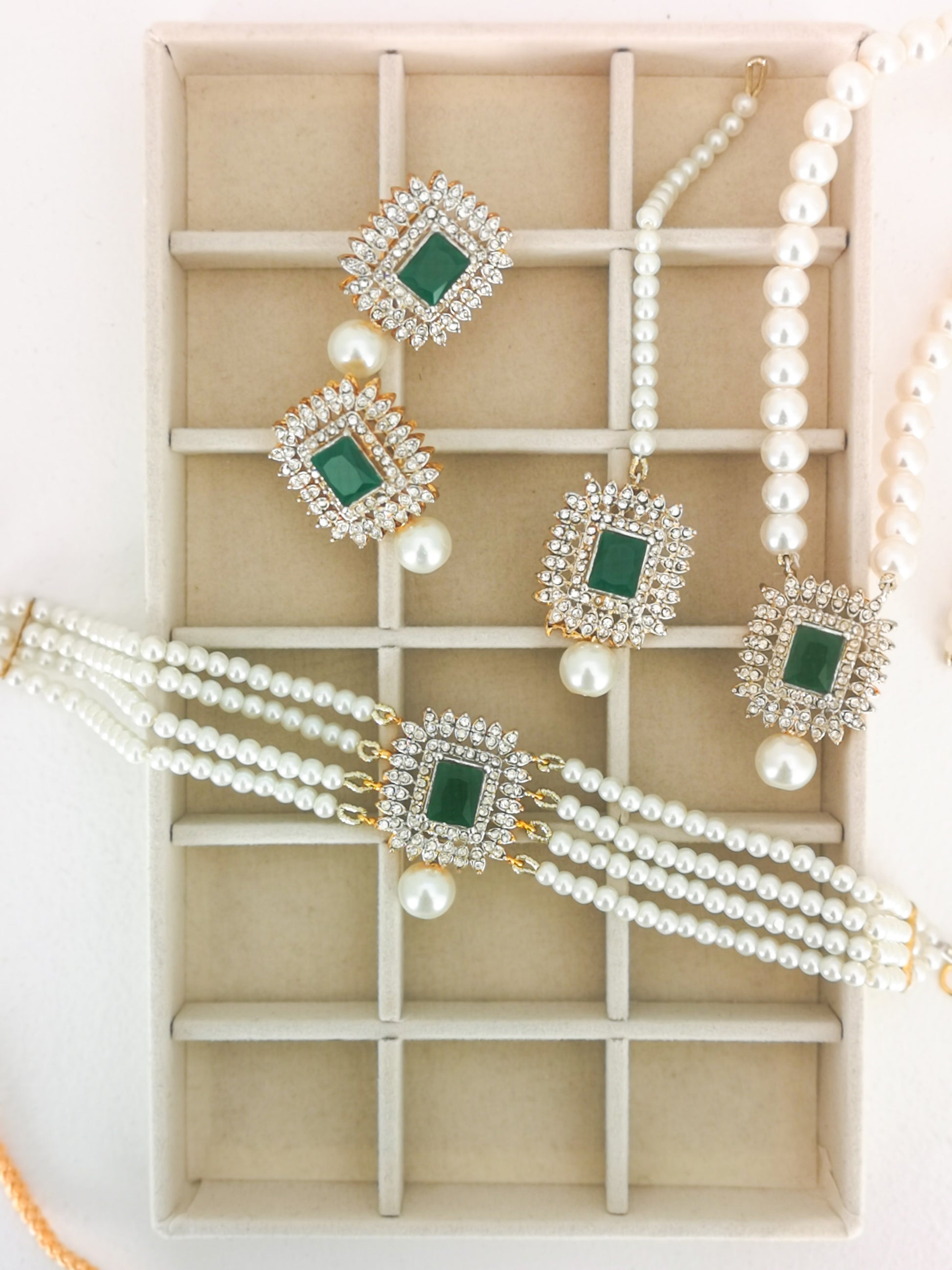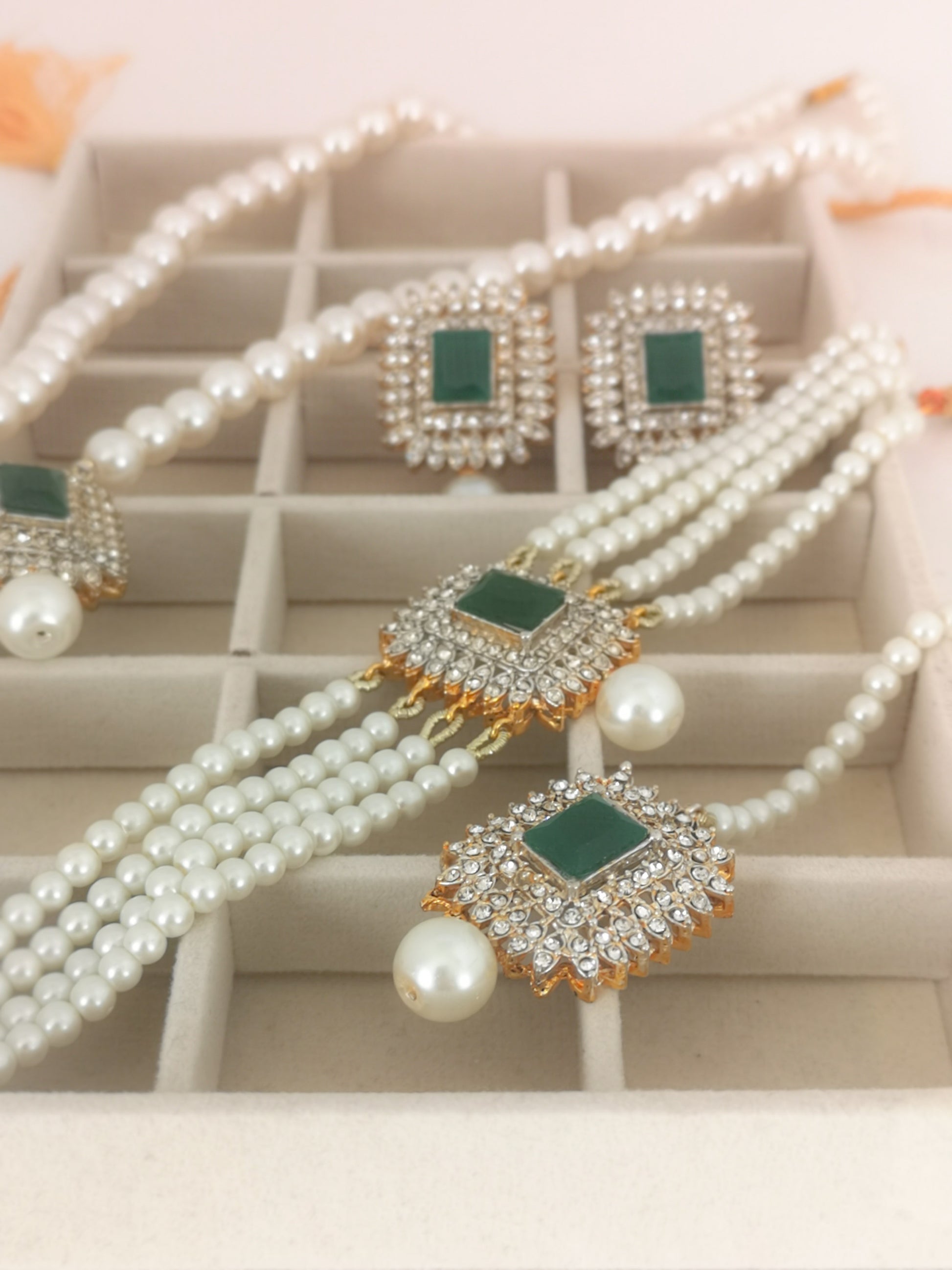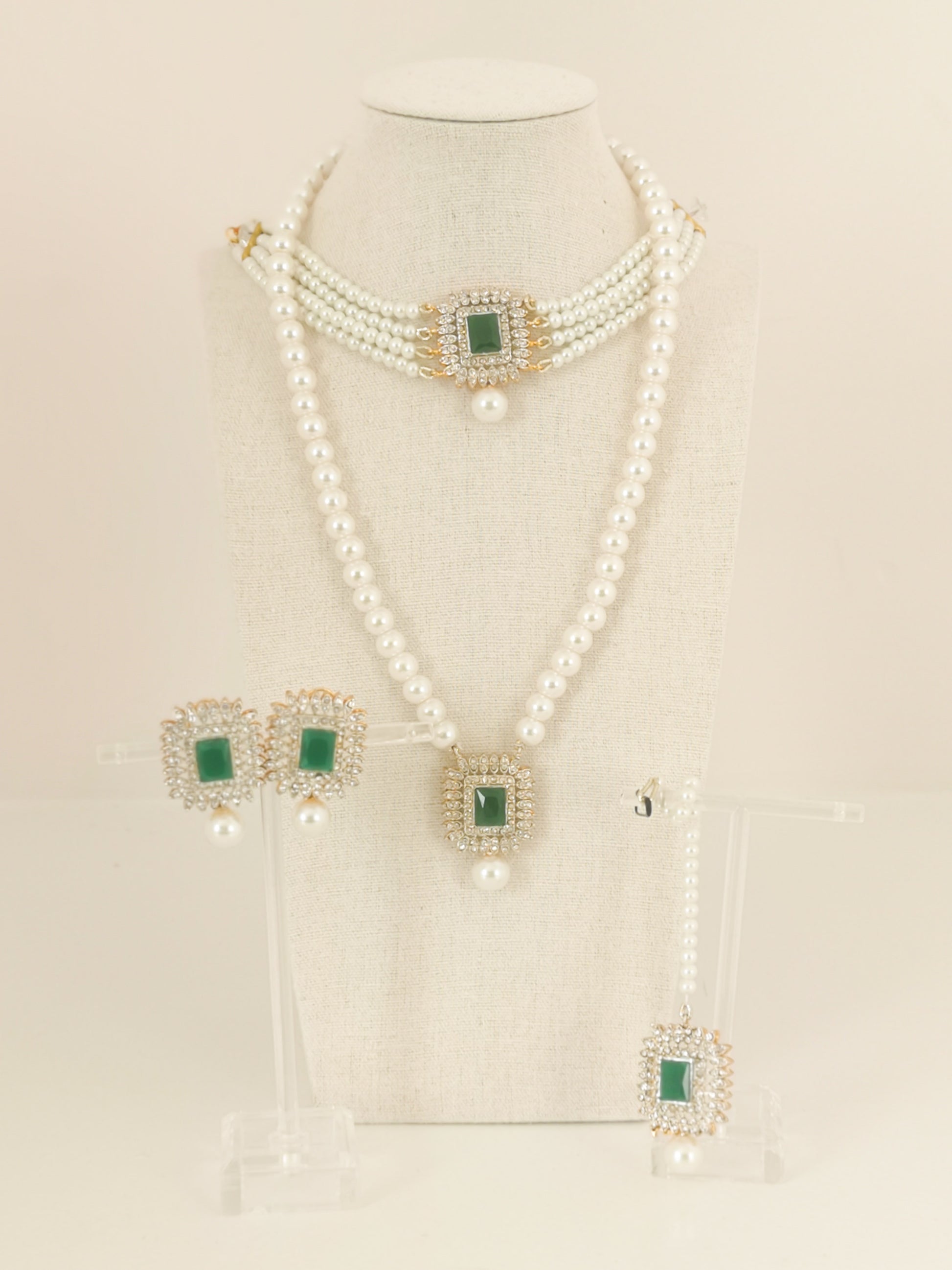 Pearl Choker Set - Dark Green (Choker Earrings, Pendant Necklace and Teeks)