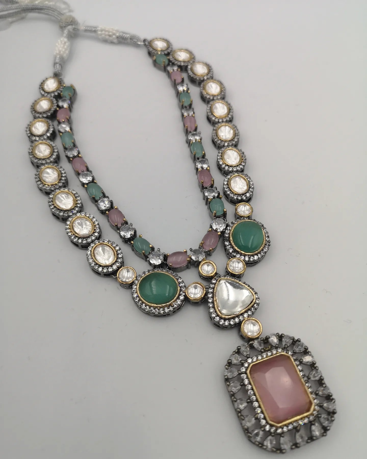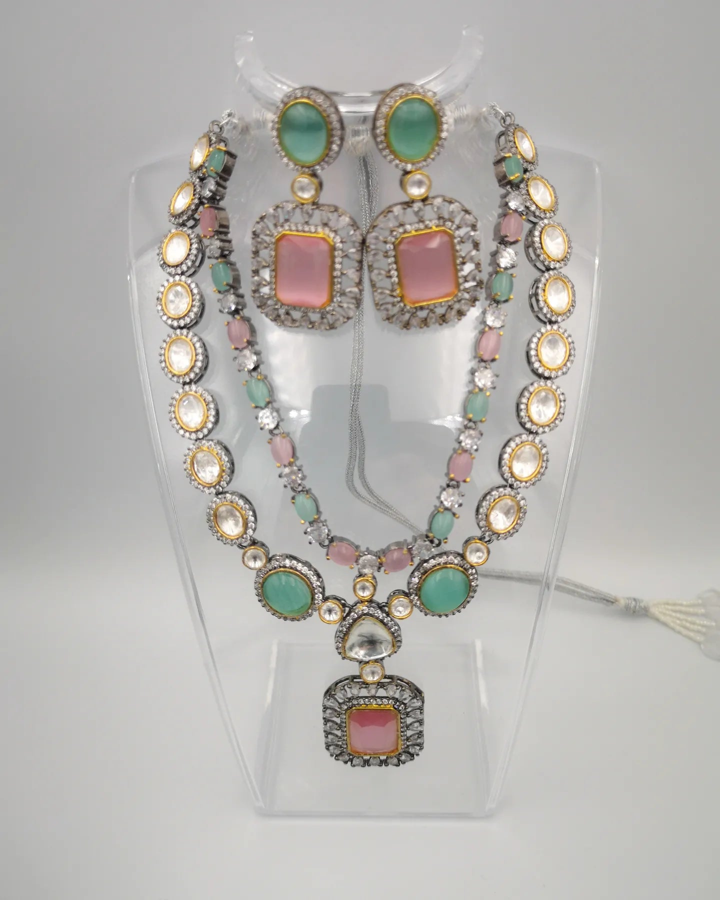 Stone Set - Pink & Mint (Earrings and Necklace)