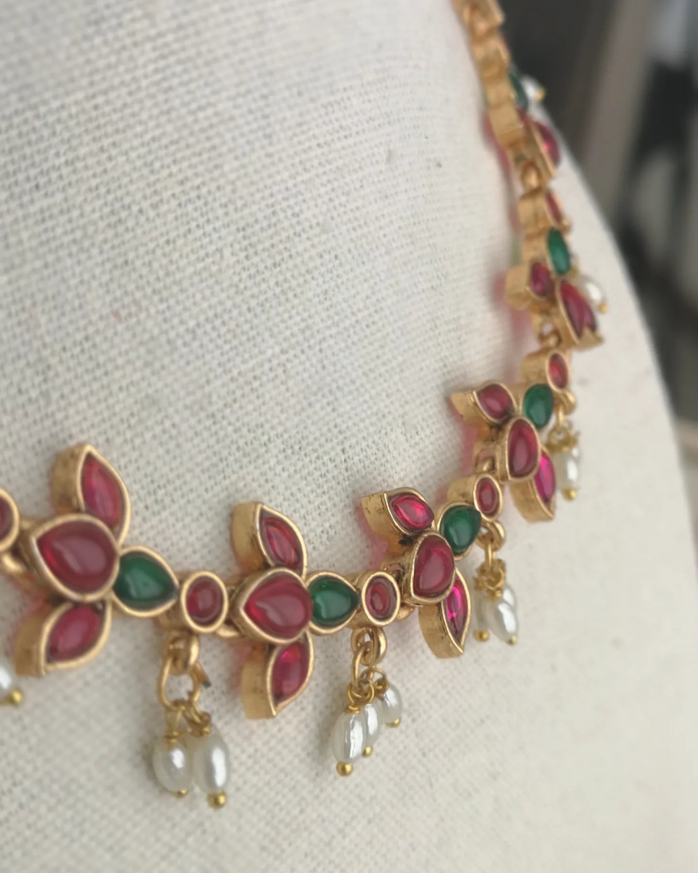 Temple Jewelry - Lotus Set with Pearls (Earrings and Necklace)
